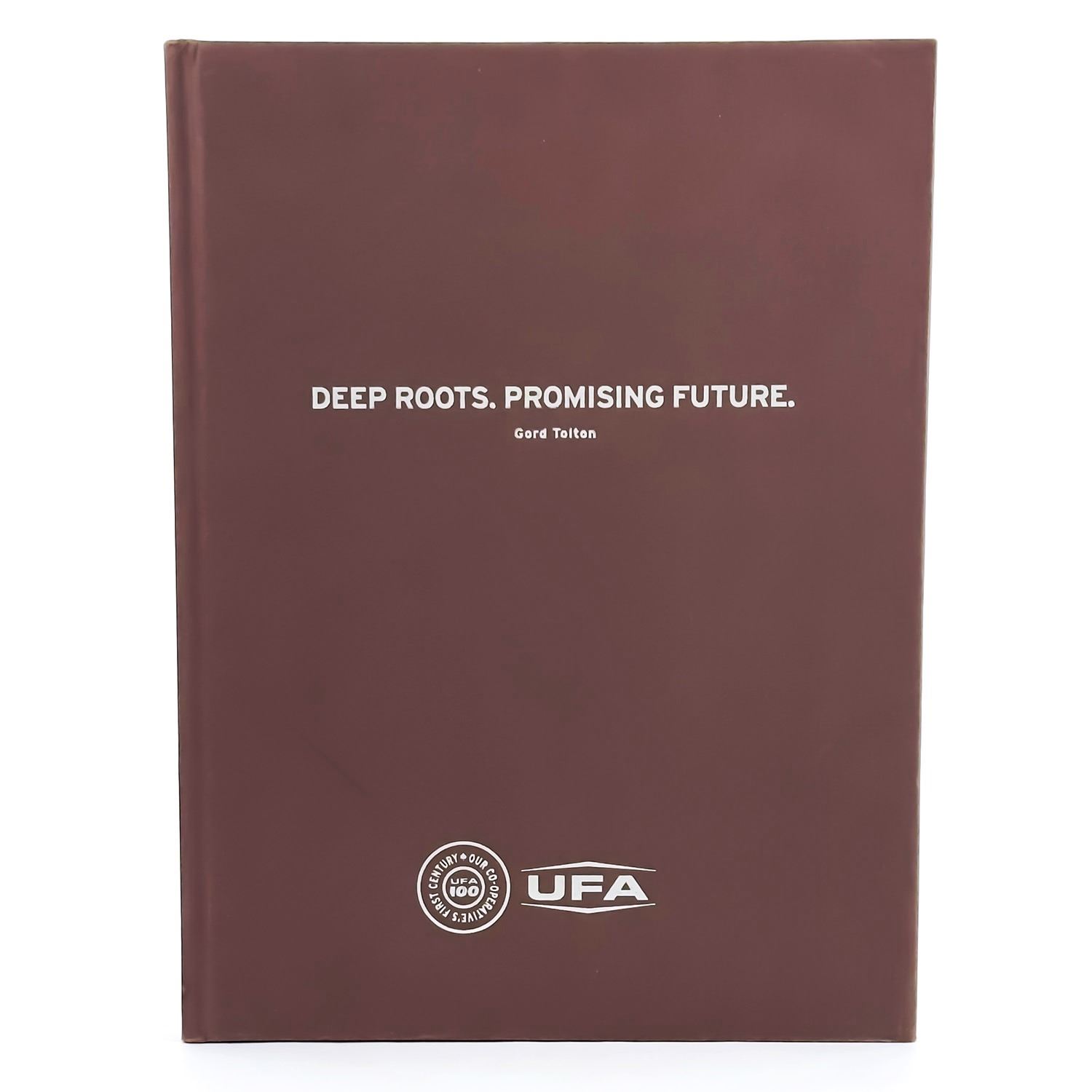 #8314 - UFA HISTORY BOOK - DEEP ROOTS - PROMISING FUTURE BY GORD TOLTON. UNITED FARMERS OF ALBERTA - OUR CO-OPERATIVE’S FIRST CENTURY - UFA 100 YEARS. HARDCOVER BOOK PUBLISHED IN 2009 BY UFA - 194 PAGES. MEASURES: 9.25” X 12.25”