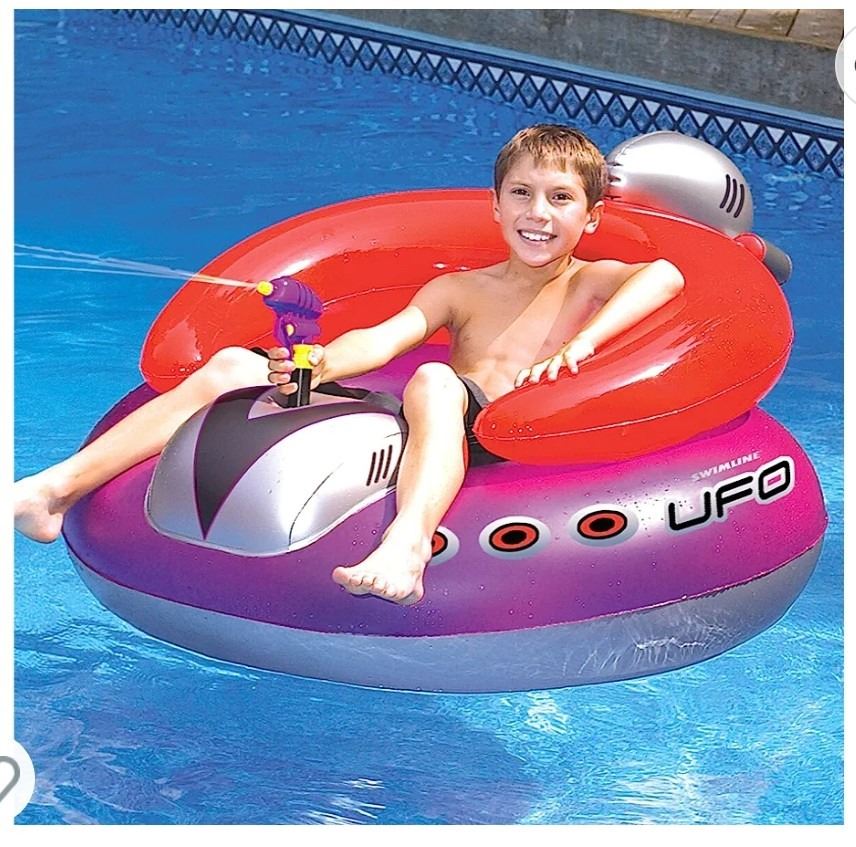Swimline Inflatable UFO Spaceship Pool Float Ride On, With Water Squirter Ray Gun, Open Box, Like New Condition