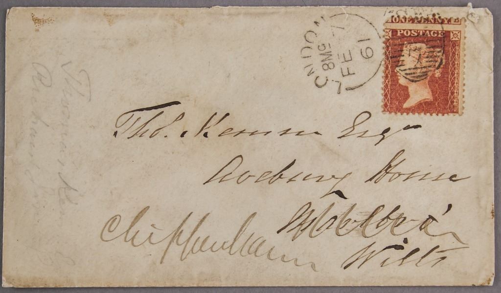 UK envelope with stamps and postmarks. Likely postmarked to Feb 7 1861. 7 x 12 cm.