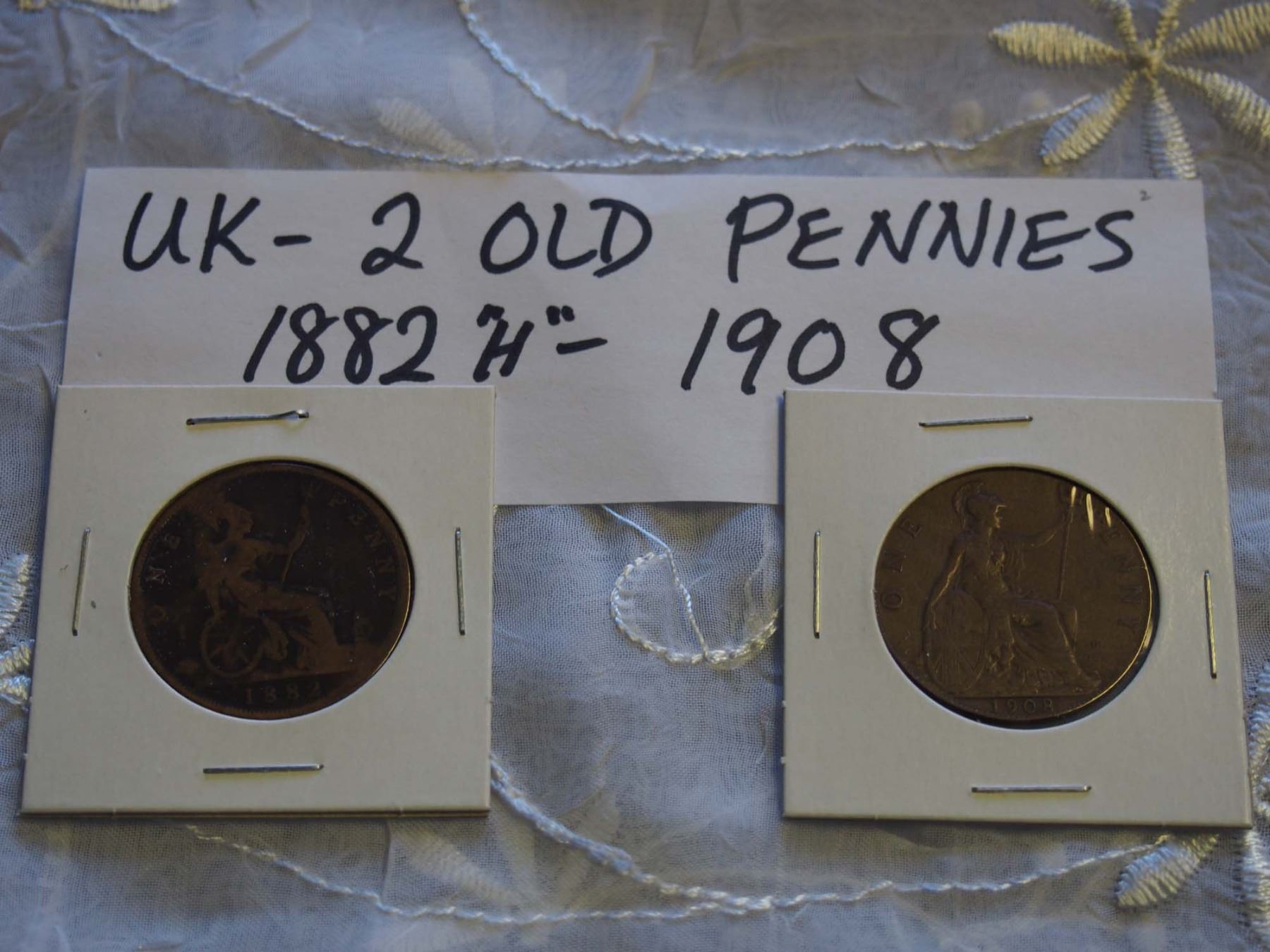 UK Pennies (2) (1882"H", 1908)