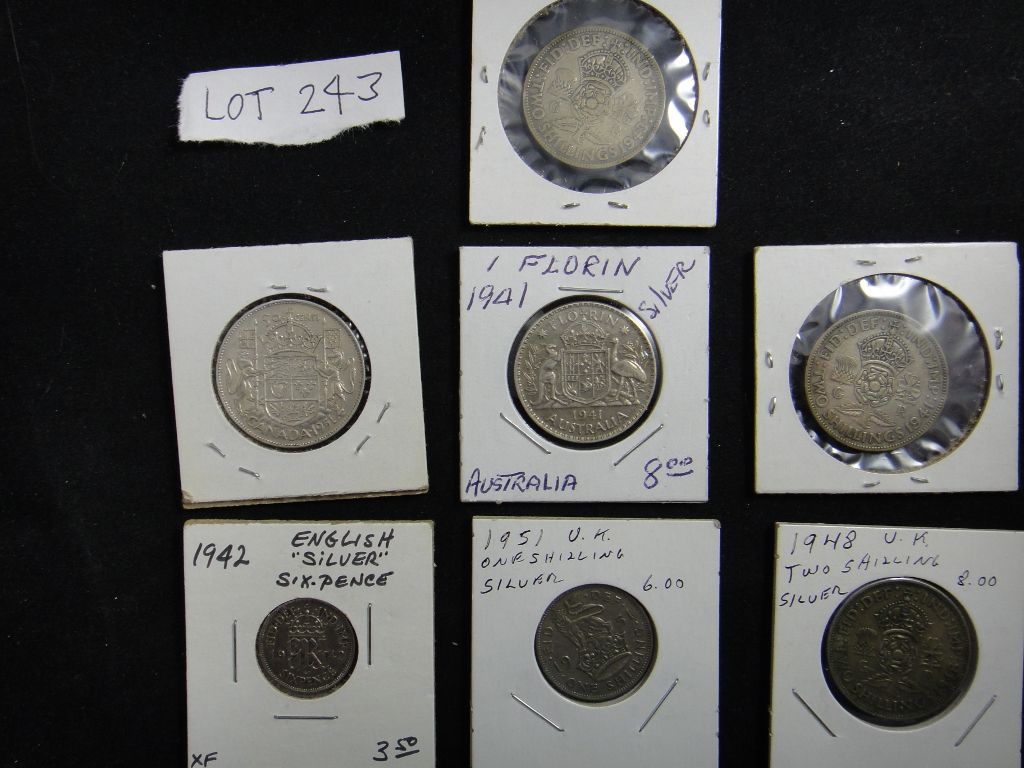 Includes Austrailian Florin and other interesting English and Canadian silver pieces.