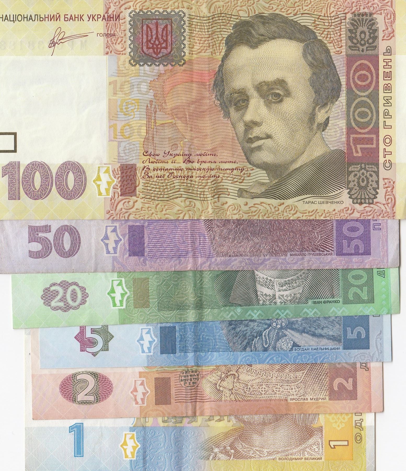 Ukraine, 1 Hryven, 2 Hryven, 5 Hryven, 20 Hryven, 50 Hryven and 100 Hryven, 2006 / 2011, XF, (Total 6 banknotes)