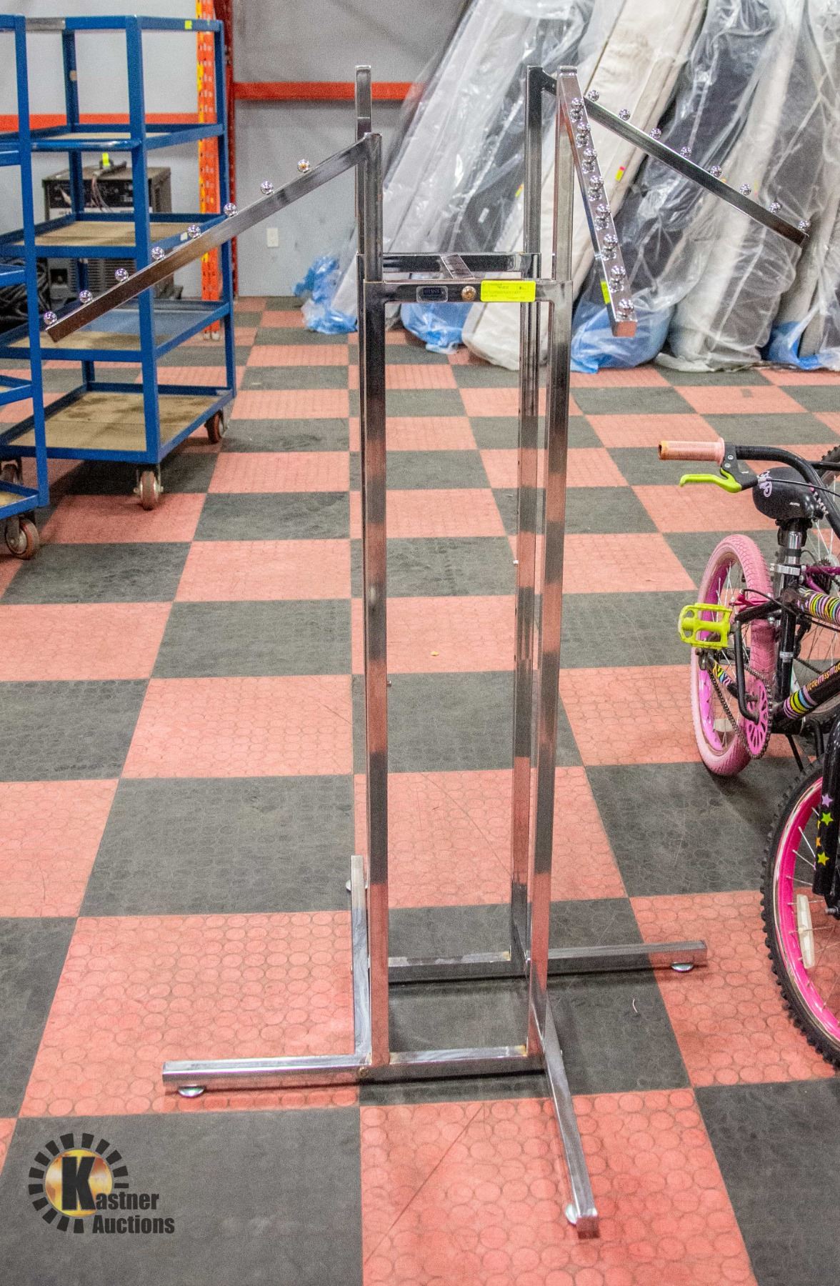 4 WAY SLANT ARM CLOTHING RACK HEIGHT 48-72 ARM LENGTH 18 INCHES WEIGHT CAPACITY 175 LBS (WEIGHTS 28 LBS) **ALL ITEMS MUST BE REMOVED BY 5PM SATURDAY, AUGUST 19TH 2023. ALL REMAINING ITEMS WILL BE SUBJECT TO A $6.00 PER DAY STORAGE CHARGE. ANY ITEMS REMAINING AFTER MONDAY, SEPTEMBER 4TH, 2023 WILL BE CONSIDERED FORFEITED. NO REFUNDS WILL BE ISSUED FOR FORFEITED ITEMS. TO SCHEDULE A PICK UP APPOINTMENT CLICK HERE