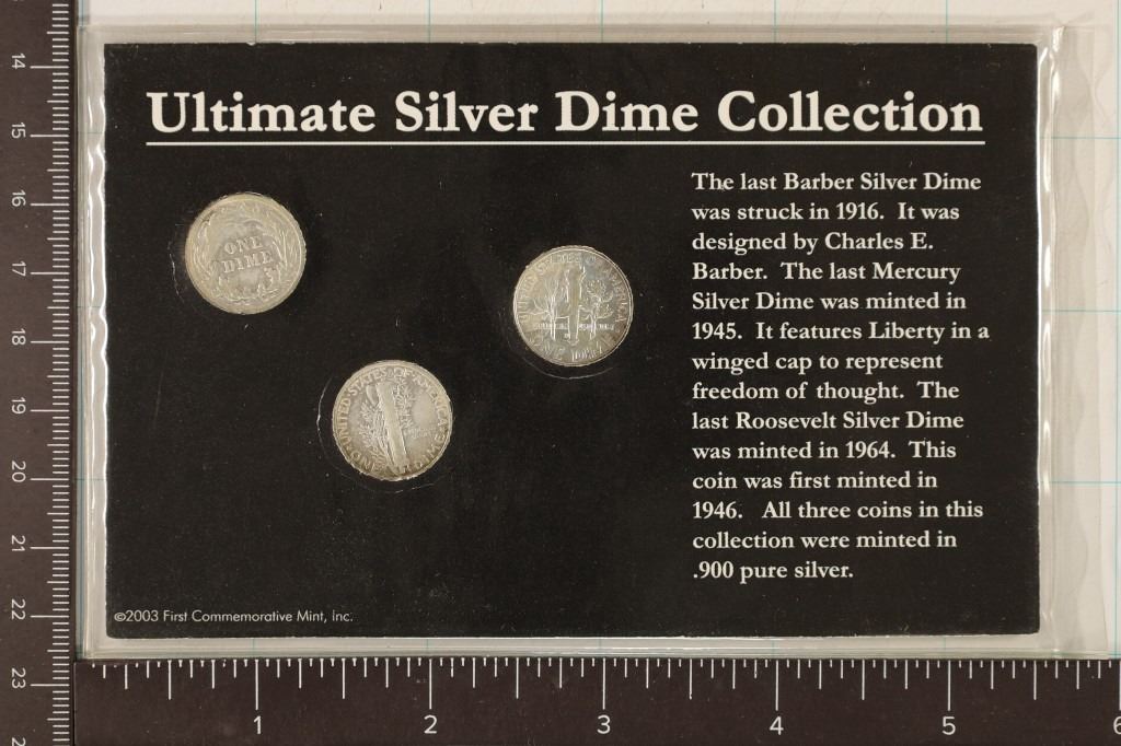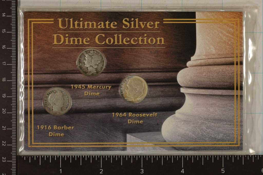 1945 MERCURY DIME AND 1964-D ROOSEVELT DIME IN CARDBOARD CARD AND PLASTIC SLEEVE