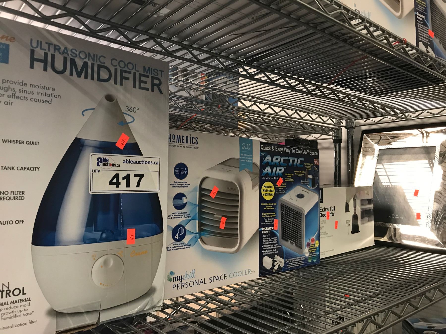 ULTRASONIC COOL MIST HUMIDIFIER, HOMEDICS PERSONAL SPACE COOLER, ARCTIC AIR COOLER, PICTURE FRAME, BED LIFTS