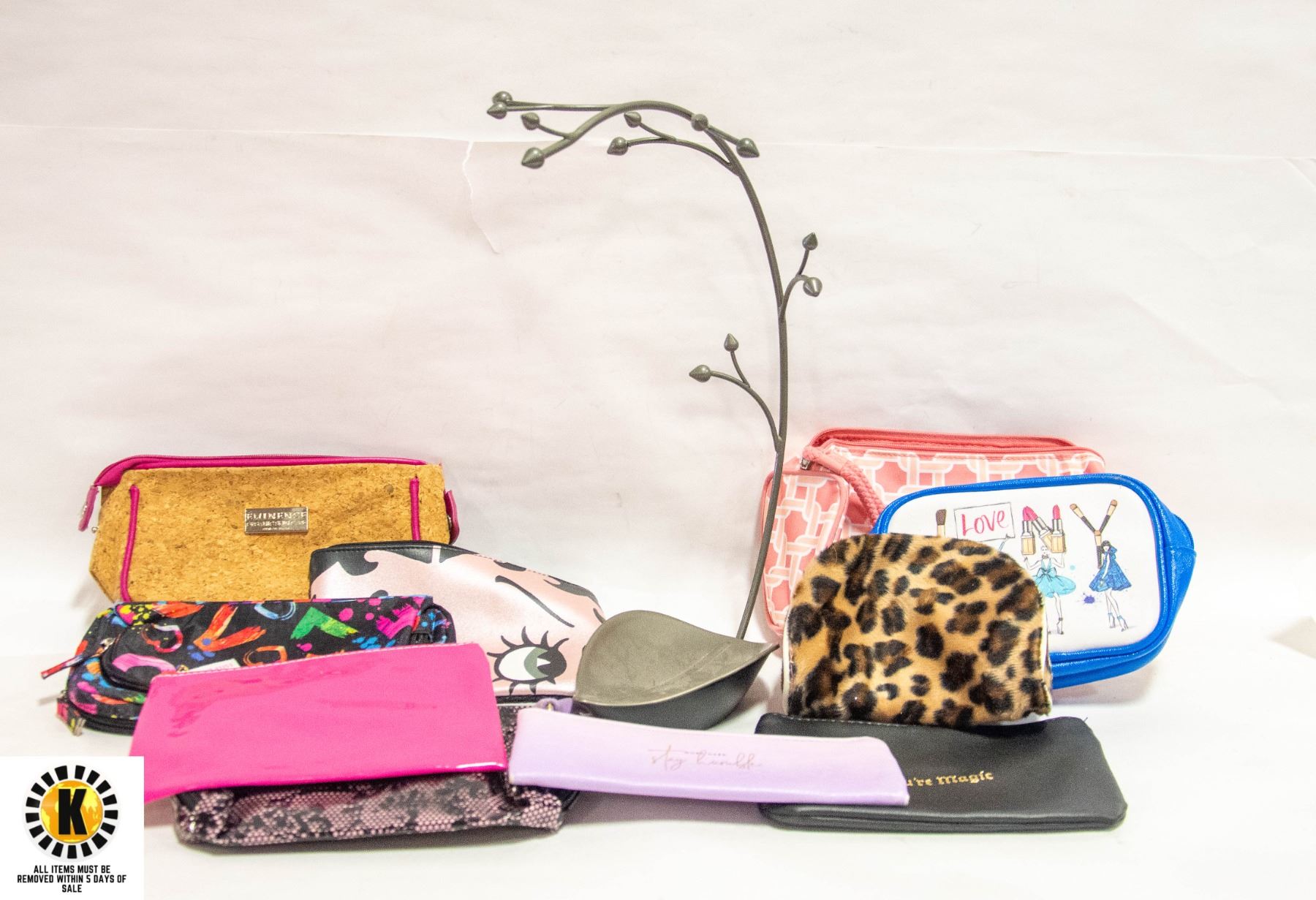 10 MAKEUP BAGS **ALL ITEMS MUST BE REMOVED BY 5PM SATURDAY, NOVEMBER 4TH 2023. ALL REMAINING ITEMS WILL BE SUBJECT TO A $6.00 PER DAY STORAGE CHARGE. ANY ITEMS REMAINING AFTER MONDAY, NOVEMBER 18TH, 2023 WILL BE CONSIDERED FORFEITED. NO REFUNDS WILL BE ISSUED FOR FORFEITED ITEMS. TO SCHEDULE A PICK UP APPOINTMENT CLICK HERE