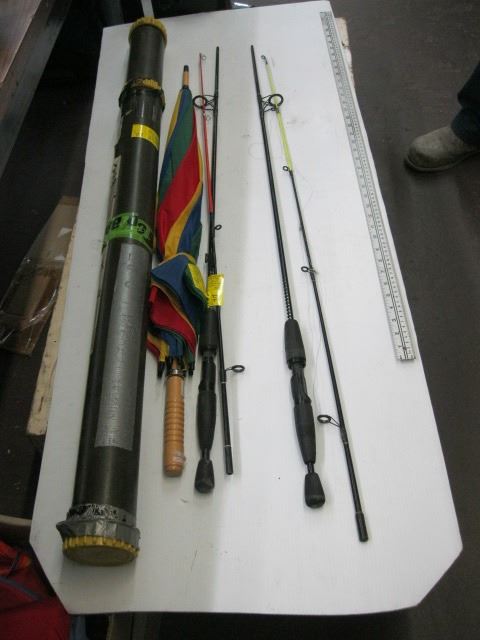 UMBRELLA, FISHING ROD & HOLDER