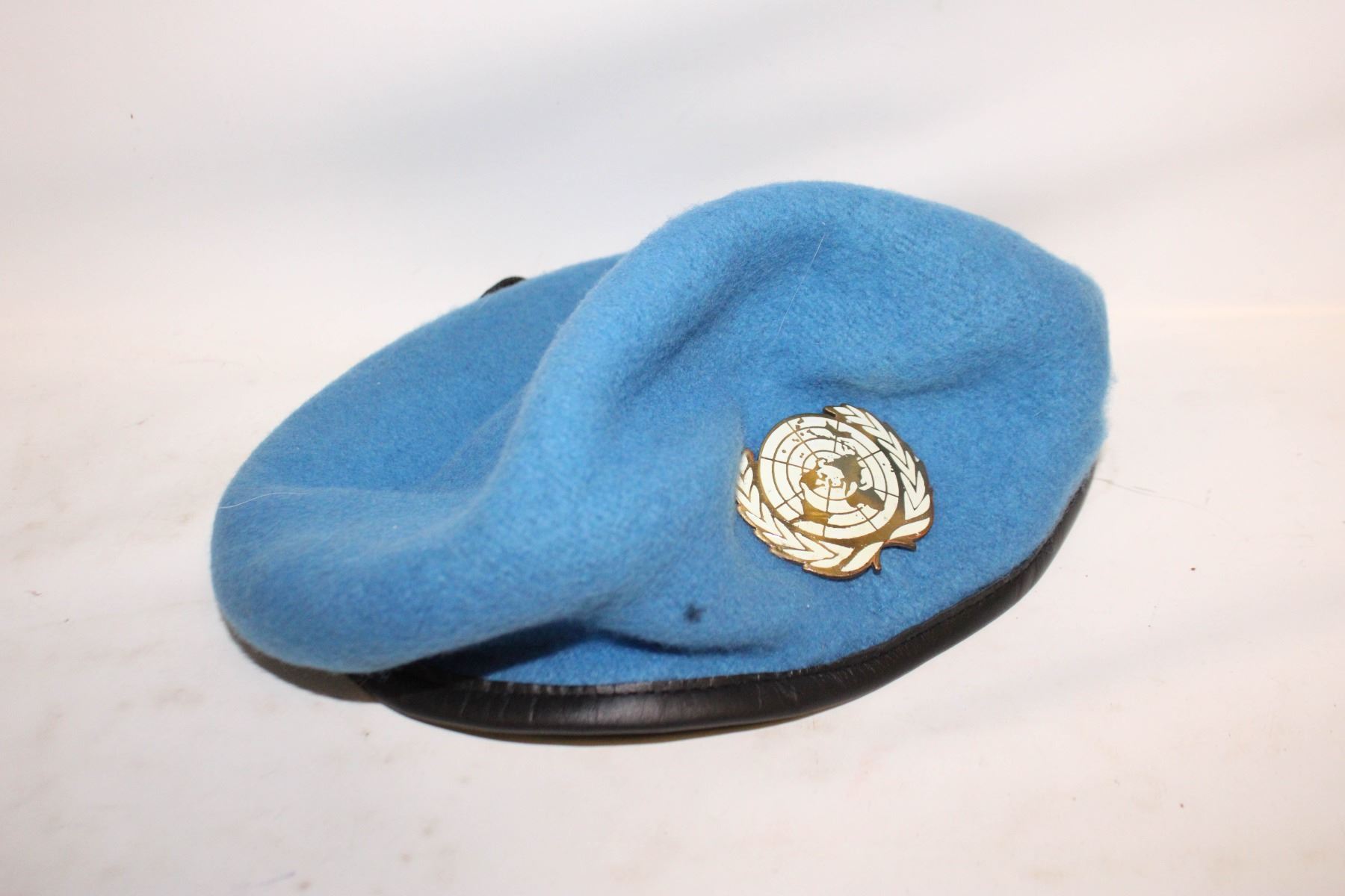UN BLUE BERET WITH CAP BADGE SIZE 6 7/8