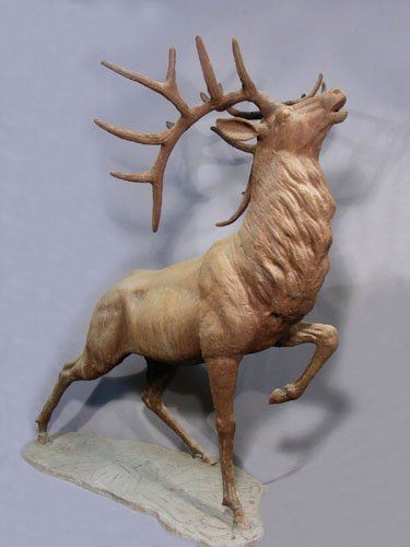 A very heavy monumental sculpture of stag with raised head. 67 1/2" high 53" long.