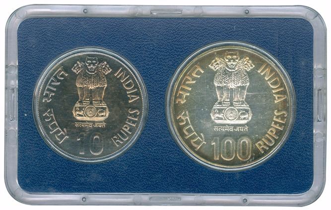 1985, UNC Set,Golden Jubilee of Reserve Bank of India,100 Rupees and 10 Rupees,BombayMint,(RB # 106),intact condition of the certificate in acrylic case outer paper cover slightly torned.
