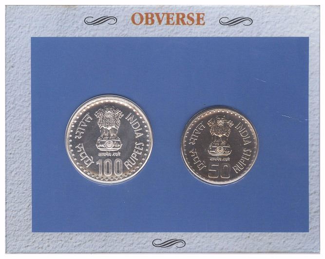 1993,UNCSet, Quit India Movement, Set of Two Coins,100 Rupees, 50 Rupees,Bombay Mint, (RB # 164),intact in blister pack.