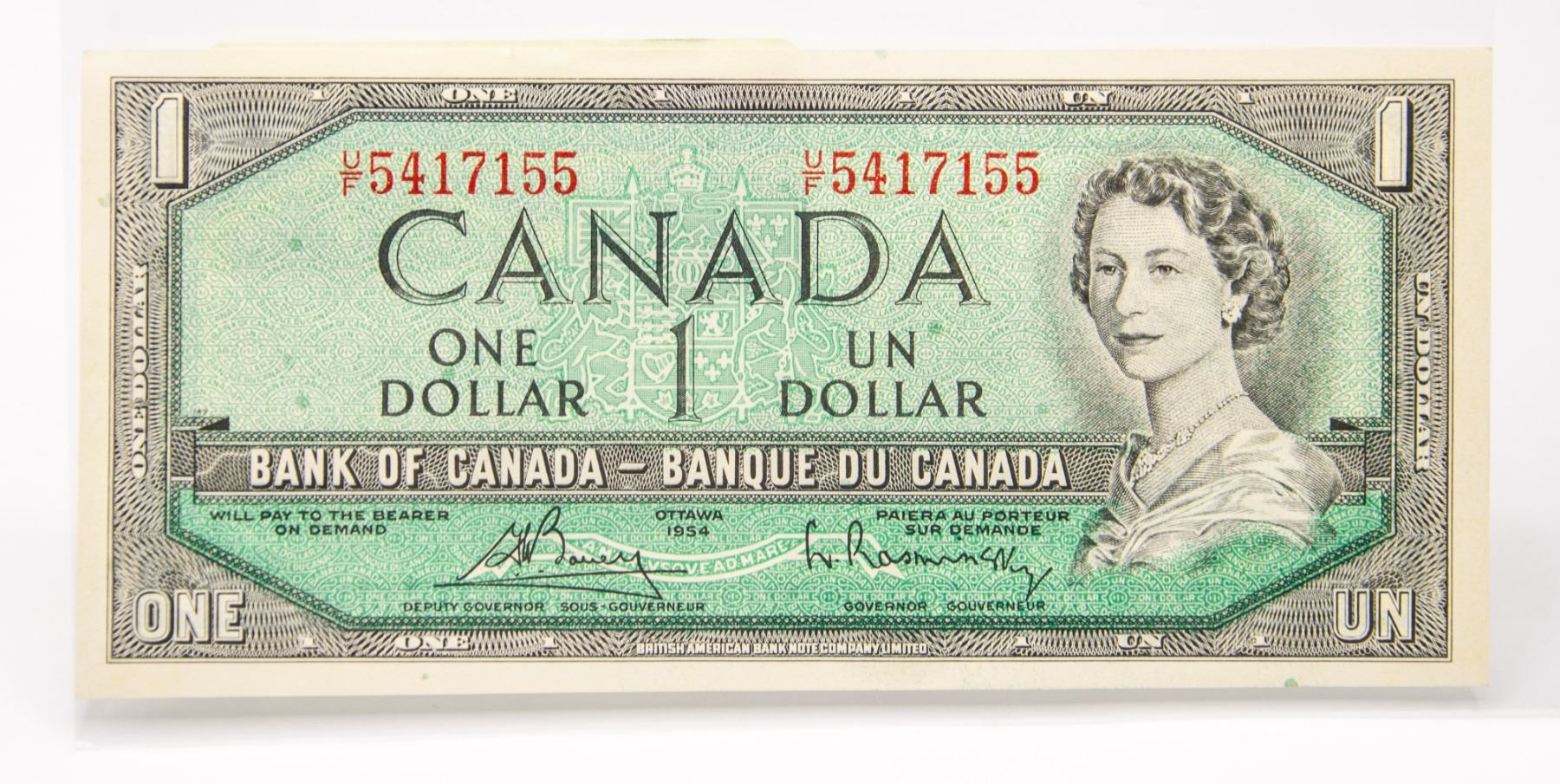 UNCIRC 1954 CANADA 1 DOLLAR BILL