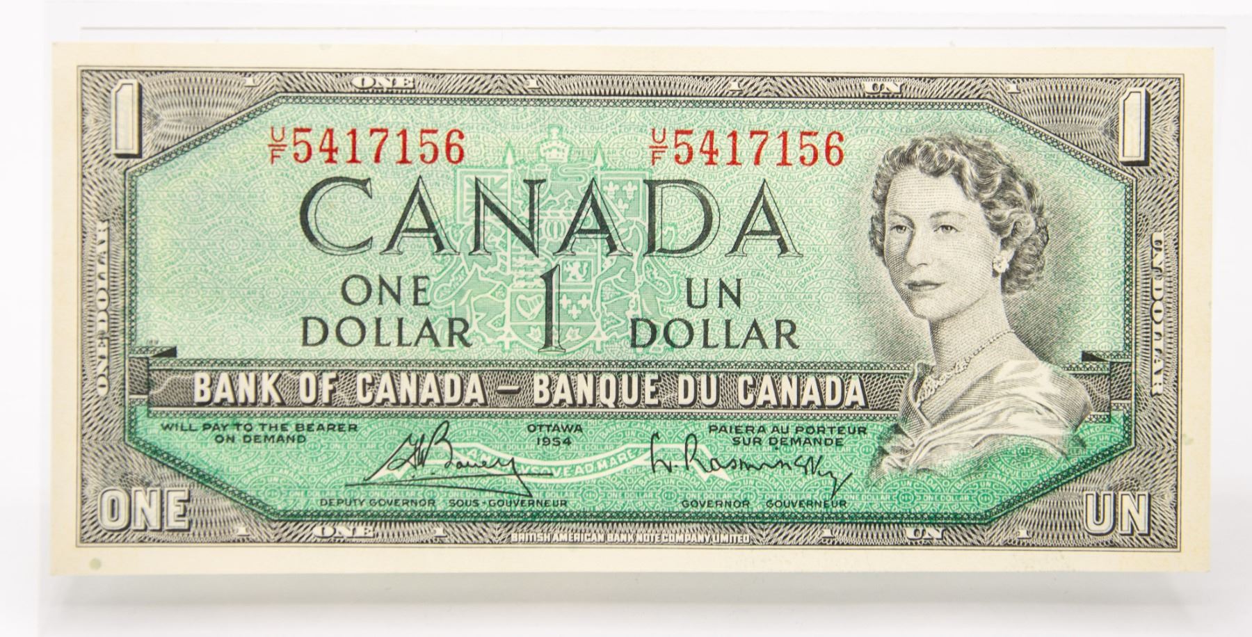 UNCIRC 1954 CANADA 1 DOLLAR BILL