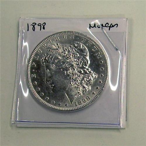 Coin: Uncirculated 1898 Morgan dollar. Ungraded, in display sleeve.