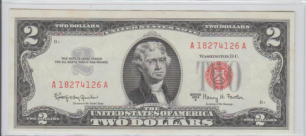 UNCIRCULATED $2 RED SEAL 1963 A