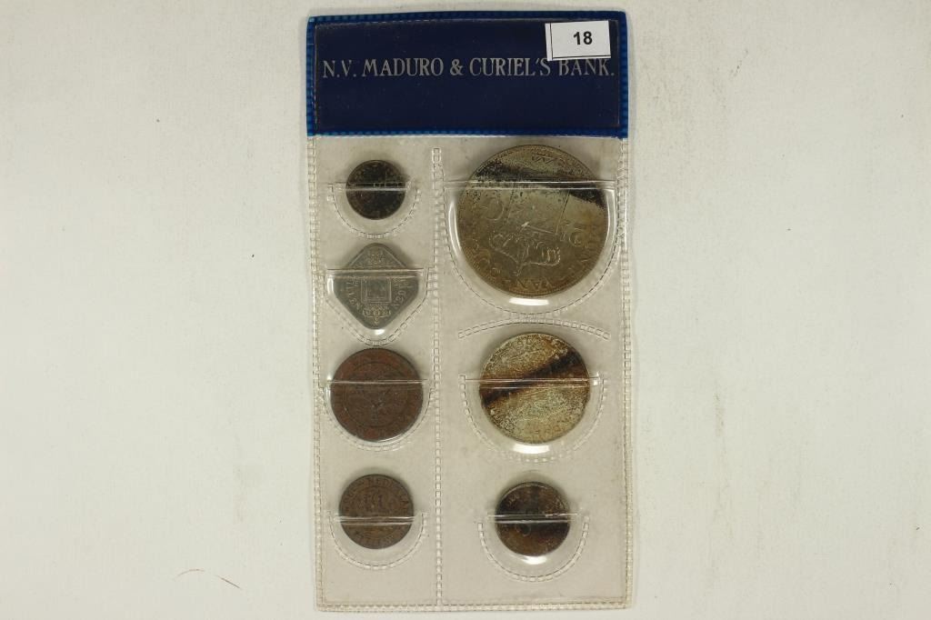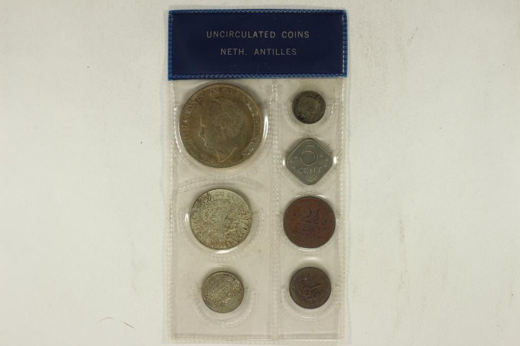 BY THE N.V. MADURO AND CURIEL'S BANK. CONTAINS: 1944-D CURACAO SILVER 2 1/2 GULDEN .5787 OZ. ASW, 1964 NETHERLAND ANTILLES SILVER 1 GULDEN .2315 OZ. ASW, 1970 SILVER NETHERLANDS ANTILLES 1/4 GULDEN .0736 OZ. ASW