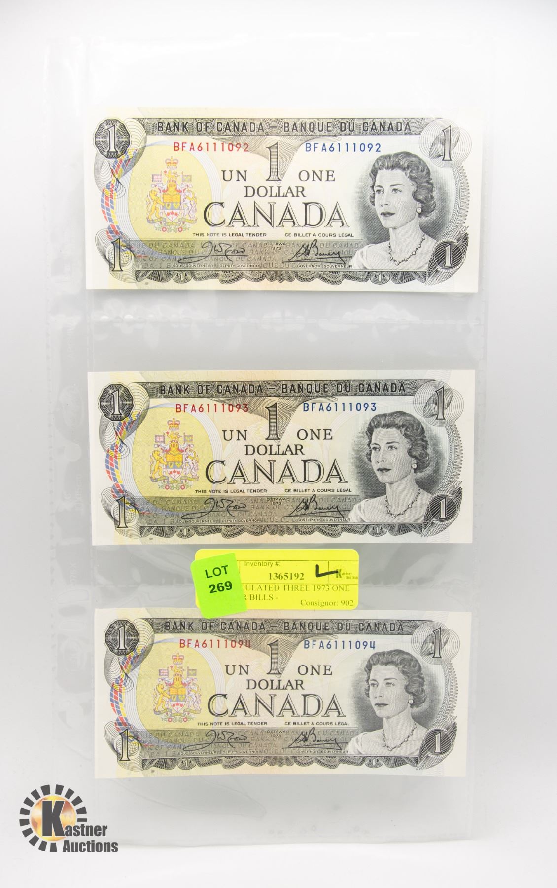 UNCIRCULATED THREE 1973 ONE DOLLAR BILLS -