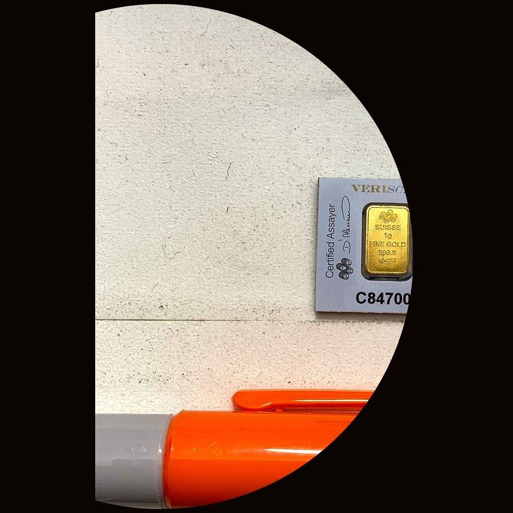 UNCIRCULATED The images show a PAMP Suisse 1g gold bar 999.9 fine gold.