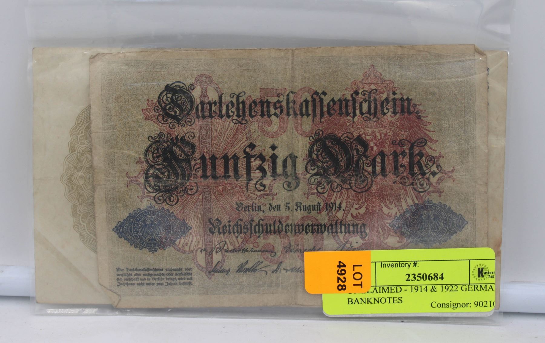 UNCLAIMED - 1914 & 1922 GERMAN BANKNOTES