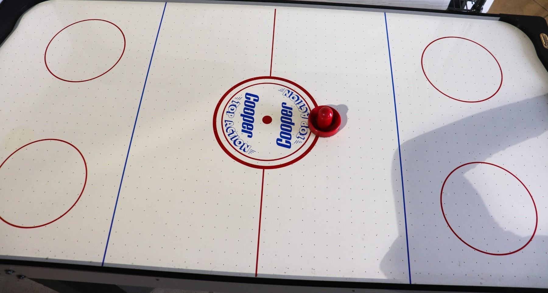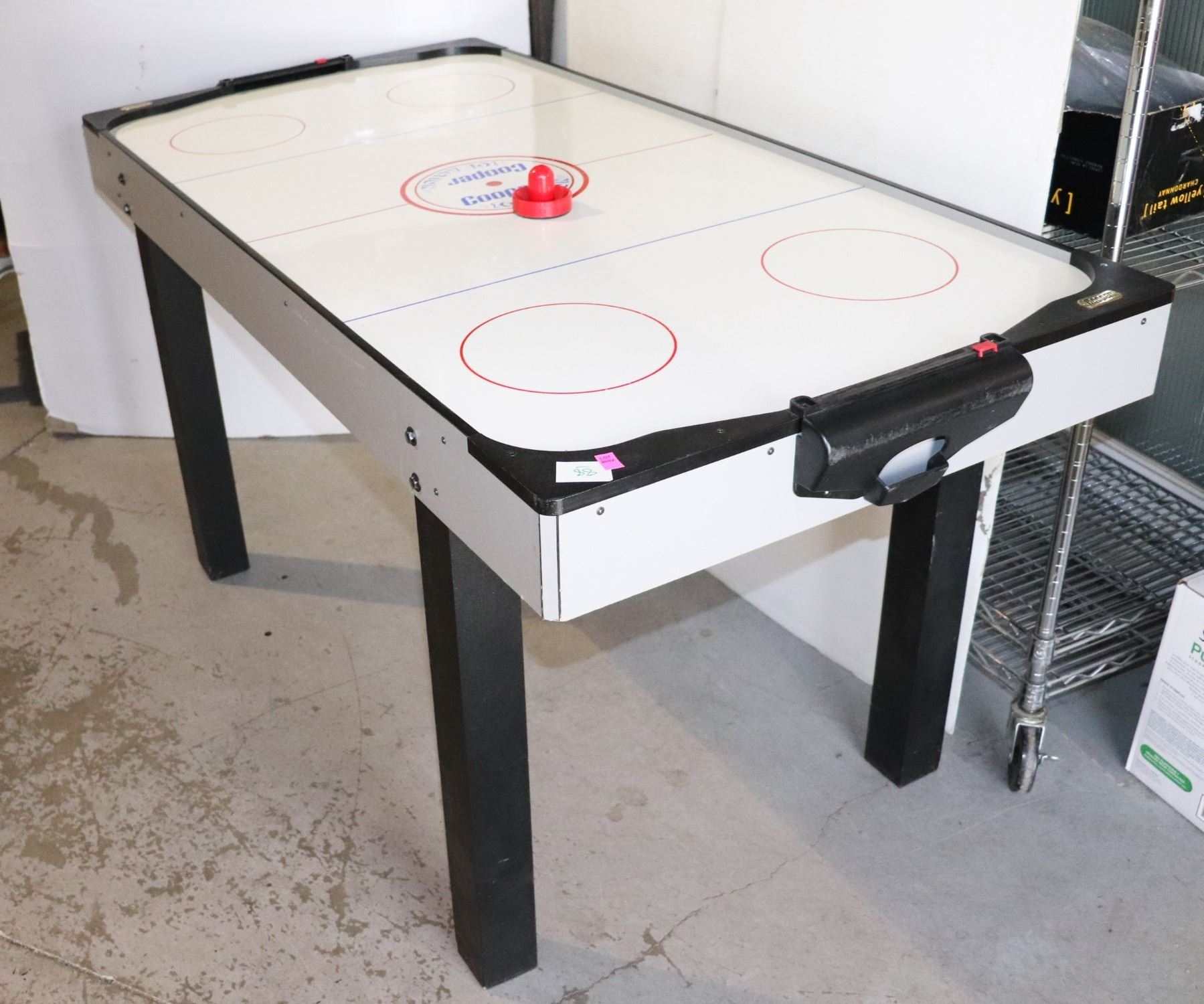 AND TWO PUCKS. TESTED, WORKING. APPROX 64" X 30" X 32" TALL. LEGS HAVE BEEN TAKEN OFF FOR FLOOR SPACE AND EASIER TRANSPORT, WILL NEED TO BE PUT BACK TOGETHER BY BUYER