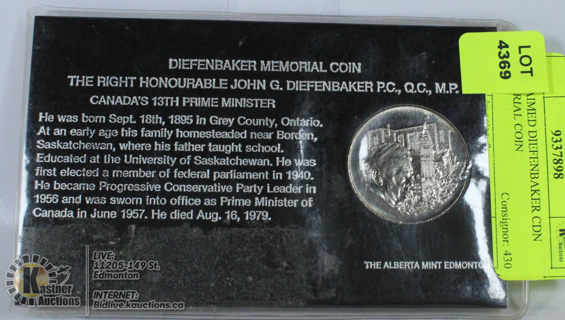 UNCLAIMED DIEFENBAKER CDN MEMORIAL COIN