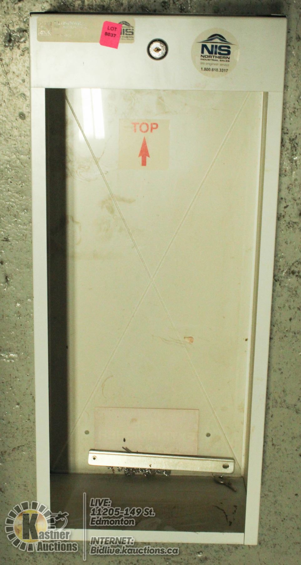 UNCLAIMED NEW FRONT GLASS WALL MOUNT FIRE EXT CASE