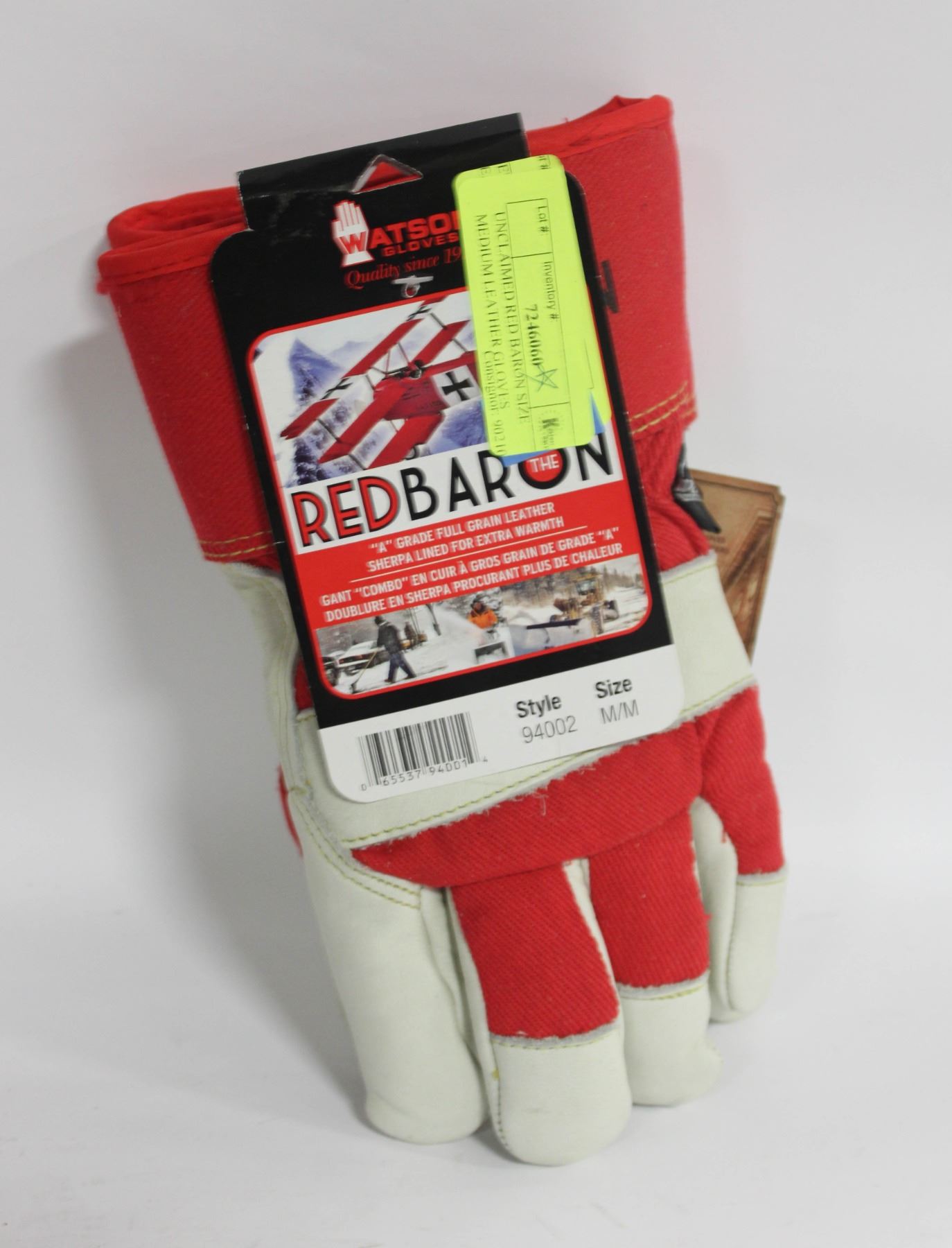 UNCLAIMED RED BARON SIZE MEDIUM LEATHER GLOVES