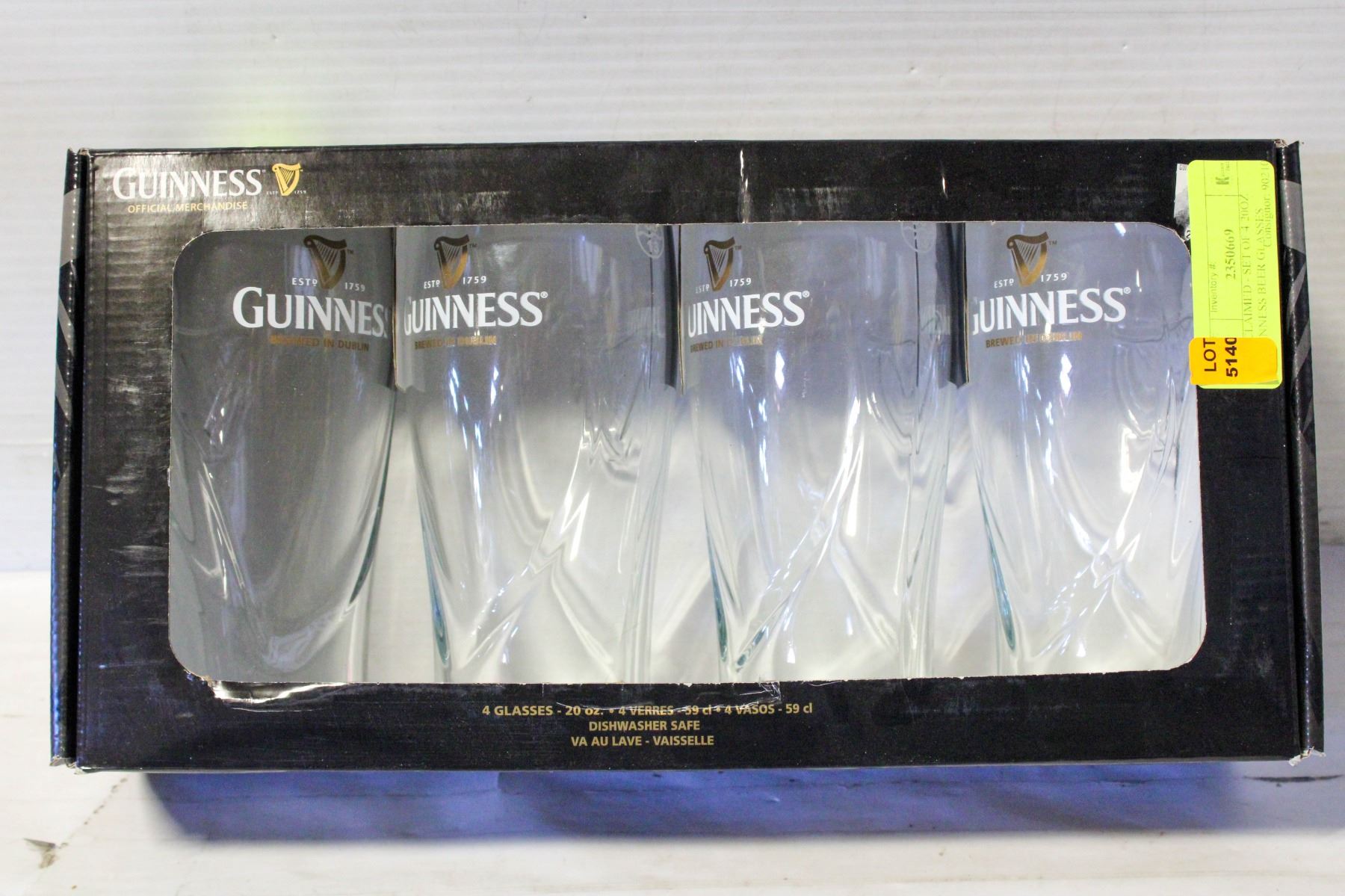 UNCLAIMED - SET OF 4 20OZ GUINNESS BEER GLASSES