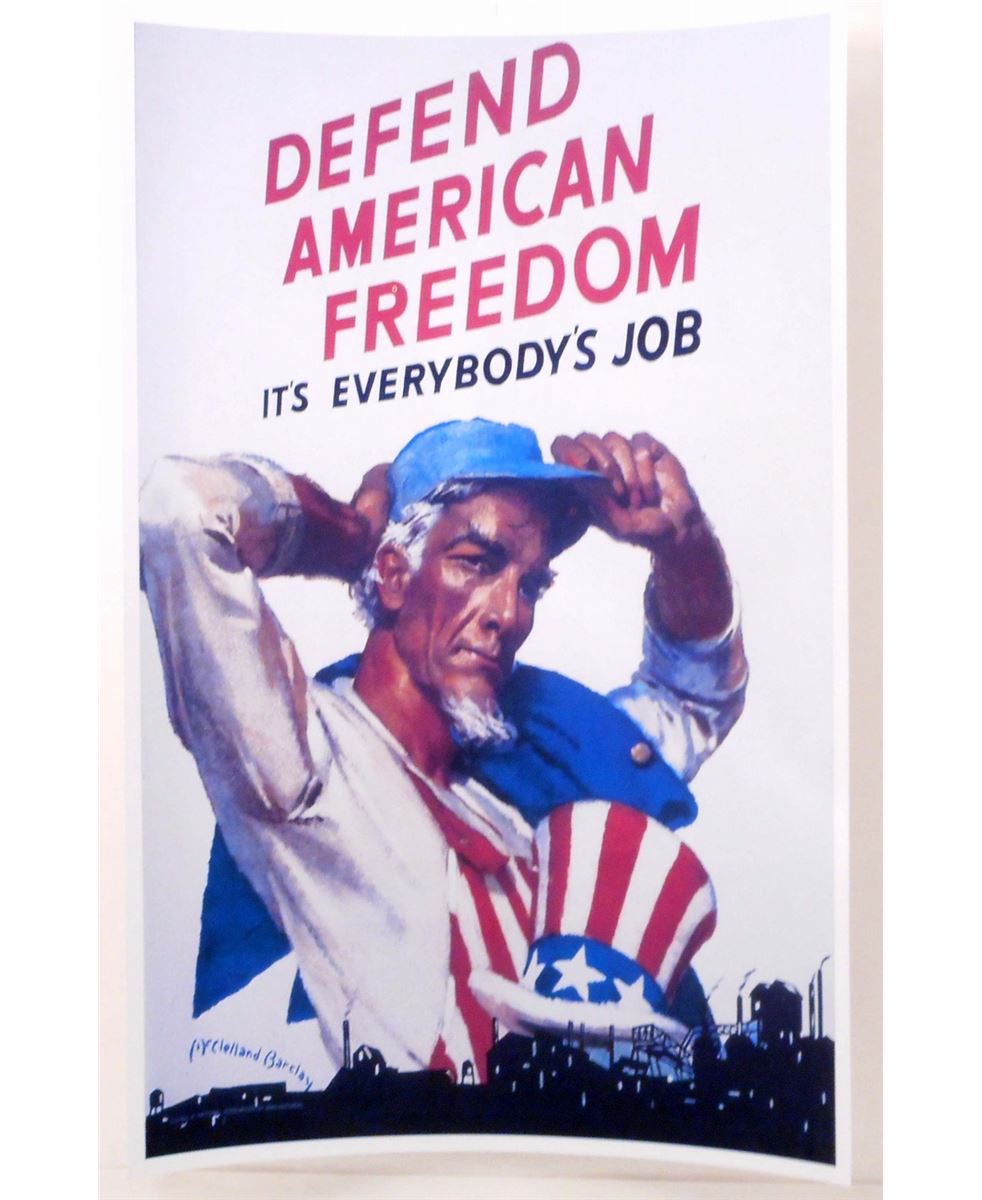 UNCLE SAM DEFEND AMERICAN FREEDOM WW2 PROPAGANDA POSTER PRINT APPROX 11" X 17"