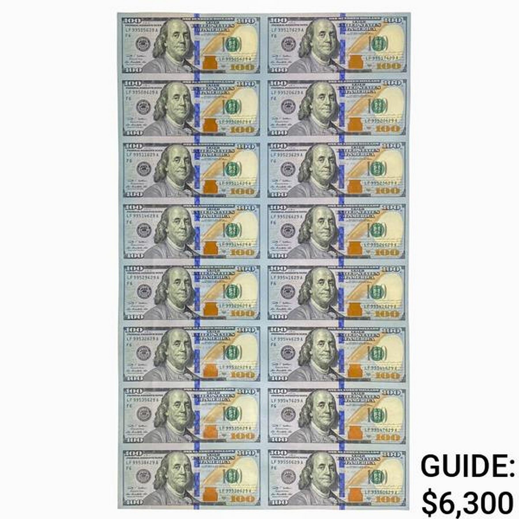 UNCUT SHEET OF (16) 2009-A $100 FRN'S GEM UNC