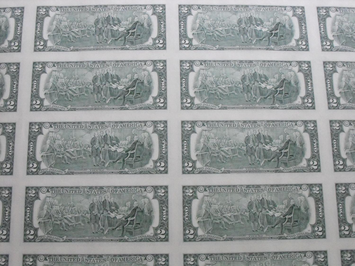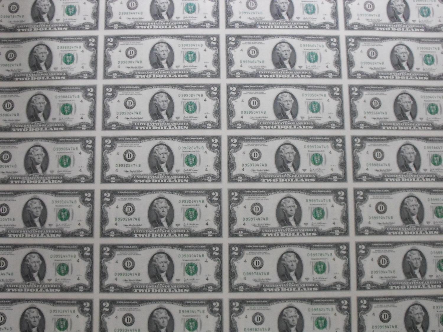 UNCUT SHEET OF 32 $2 BILL SPECTACULAR 2003
