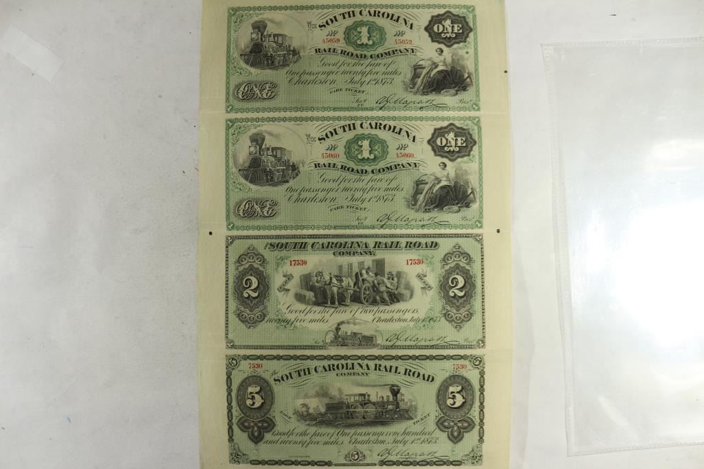 COMPANY OBSOLETE BANK NOTES, 2-ONE DOLLAR,  1-TWO DOLLAR AND 1-FIVE DOLLAR