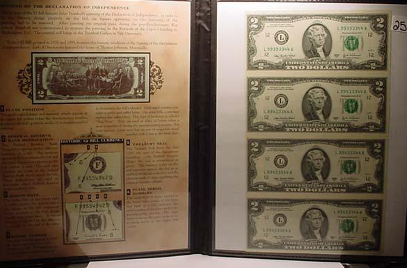 UNCUT SHEET OF 4 - 2 DOLLAR FEDERAL RESERVE NOTES IN DISPLAY FOLDER