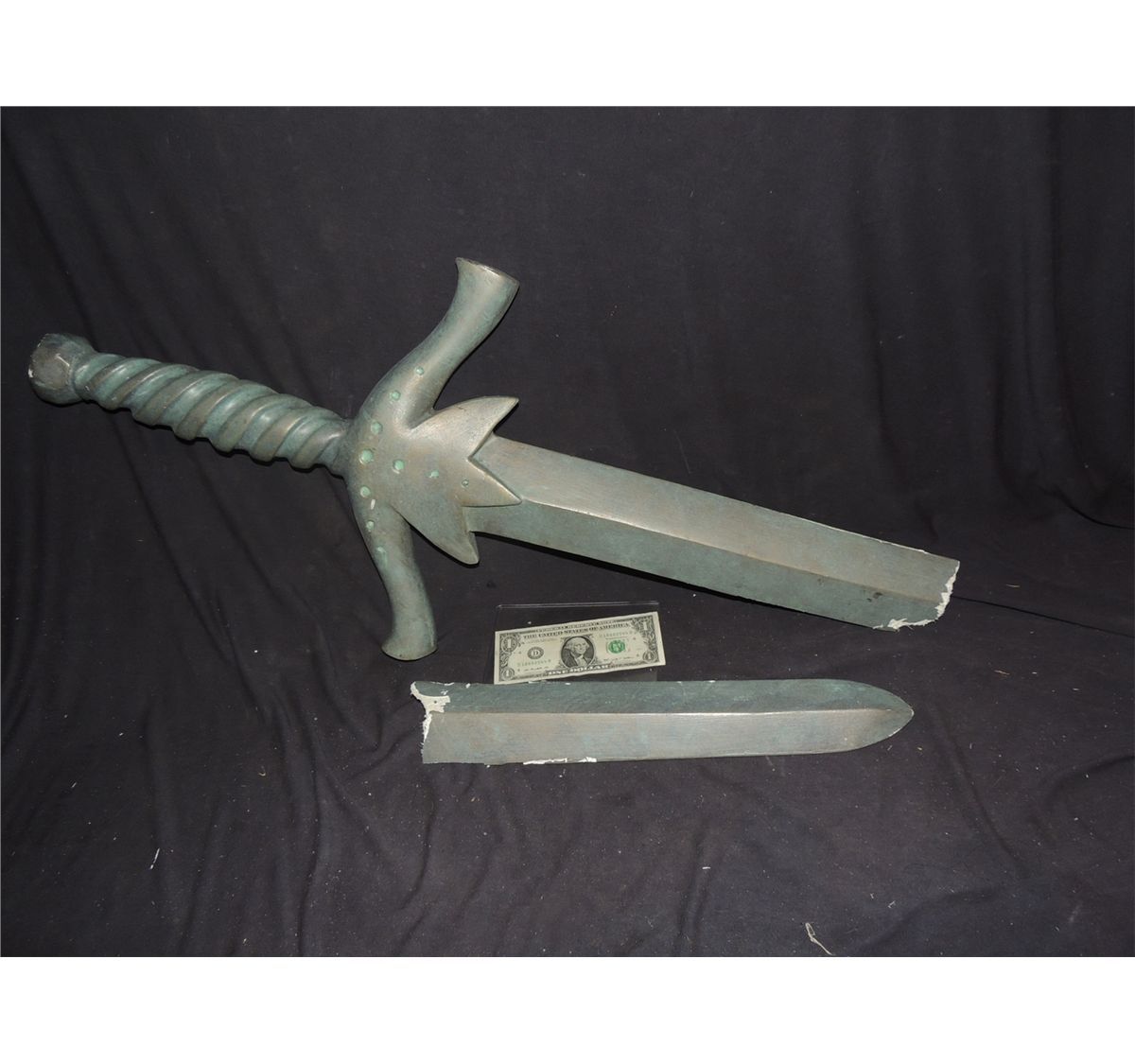 This is the sword from the statue in the feature film UNDERDOG. It was made to break away, but is missing a small section on one side.