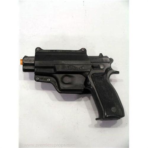 UNDERWORLD EVOLUTION - Lock and load with this black "Luger" 9mm Hand Gun and Holster Prop used onscreen in the film. The prop gun measures 8" x 5.5" x 1.5" , and is made from light-weight foam rubber. This is only a prop and cannot be made to fire in any way. Matching plastic holster is included. Add this awesome prop to your movie memorabilia arsenal today! (UWE2060)