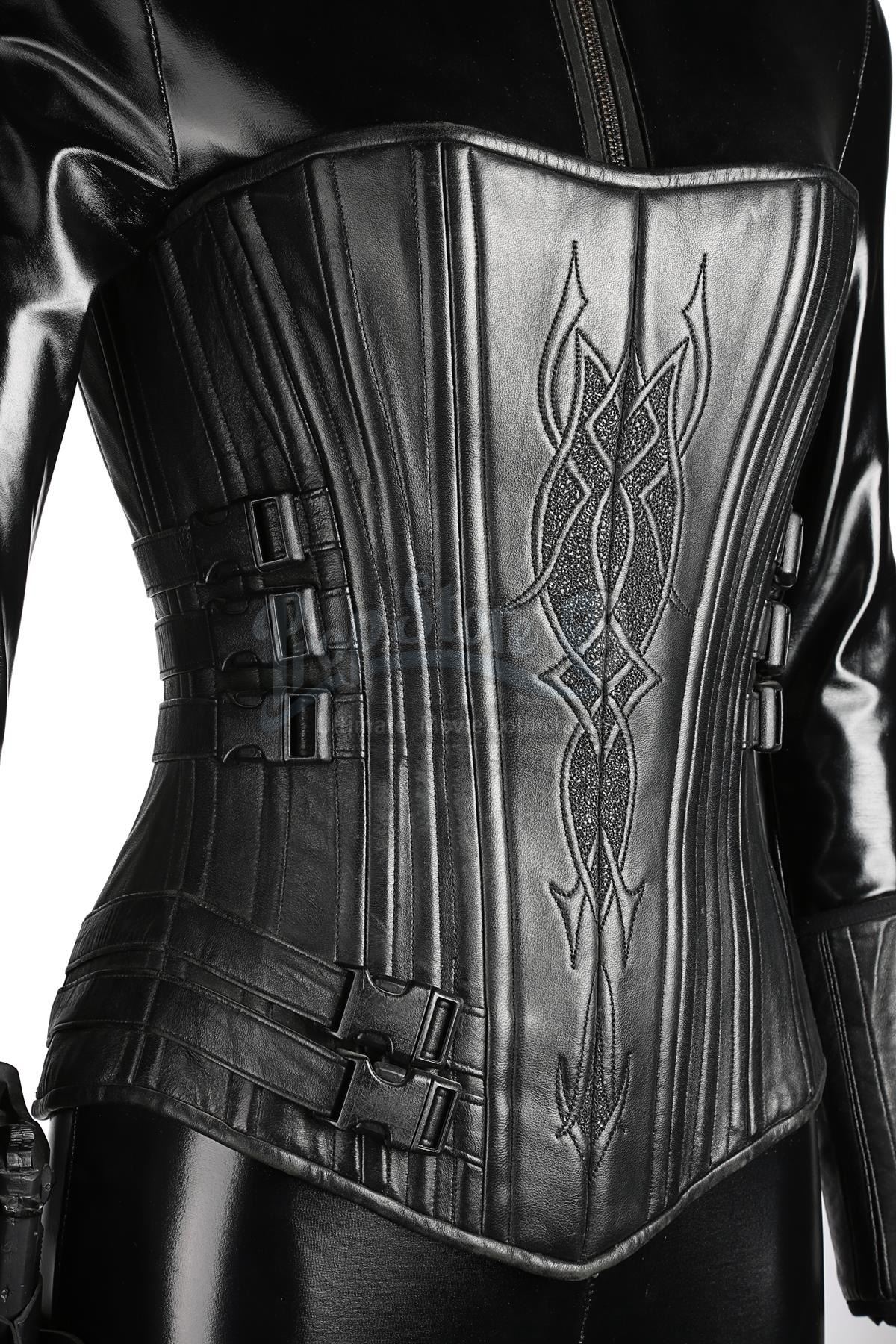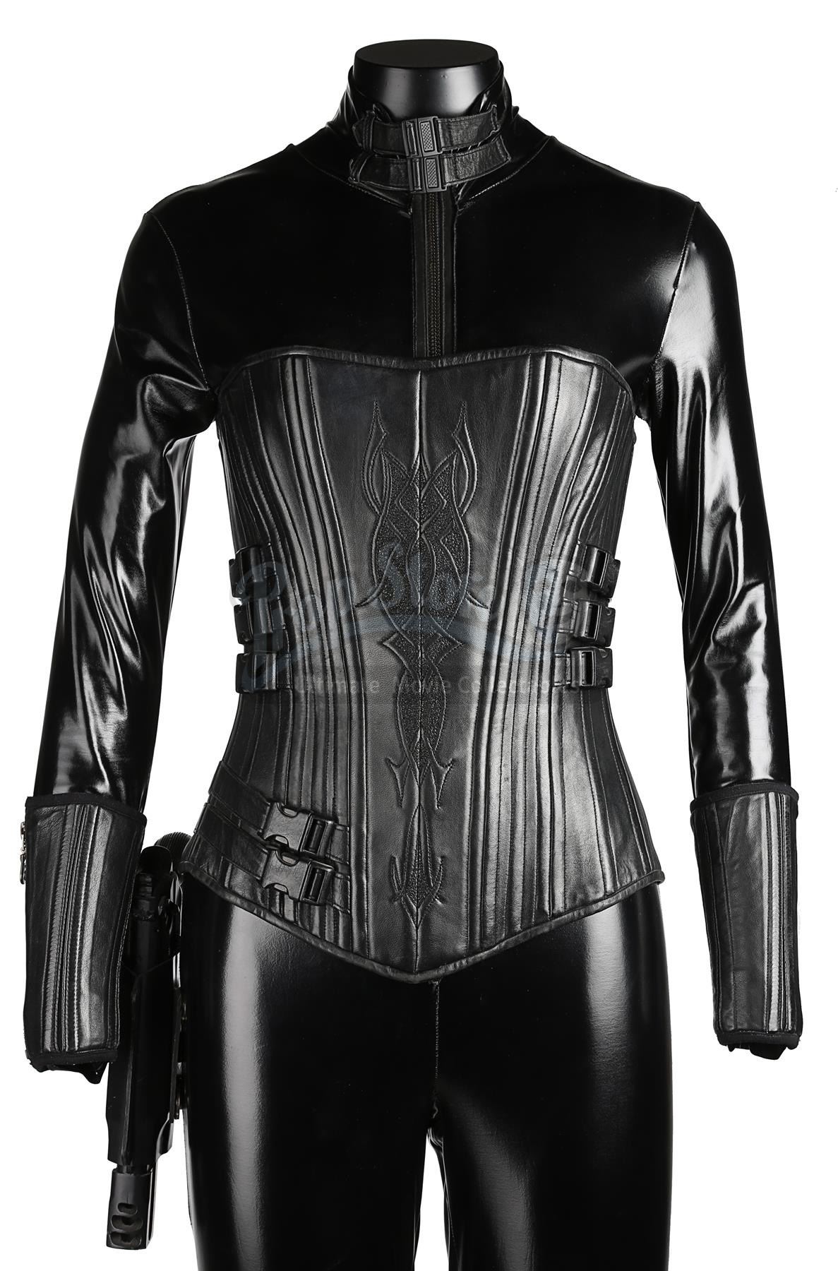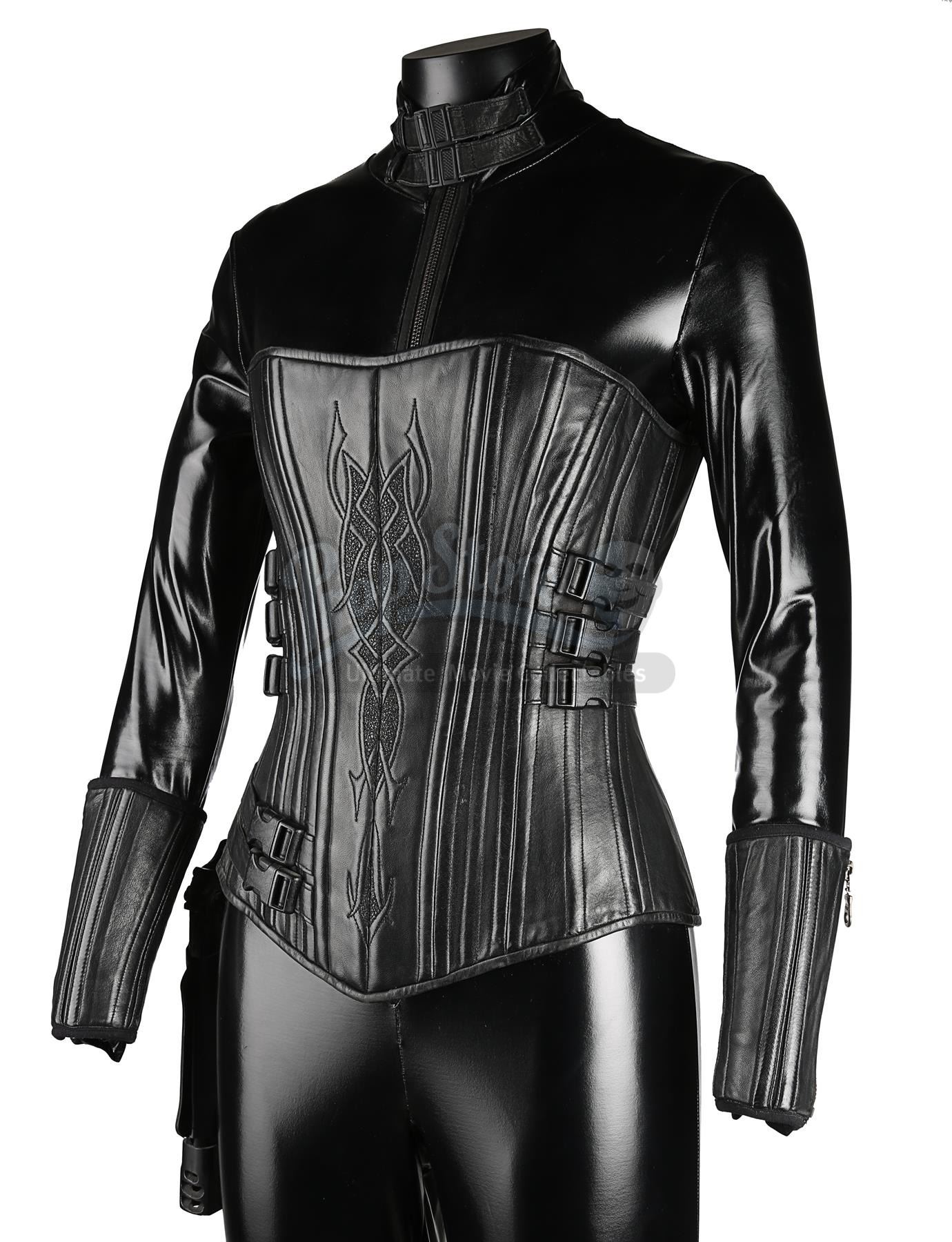 Selene's (Kate Beckinsale) Death Dealer costume from Len Wiseman's gothic horror Underworld: Evolution. Selene wore her signature costume throughout the movie as she fought against the Lycans, the race she believed responsible for killing her family.