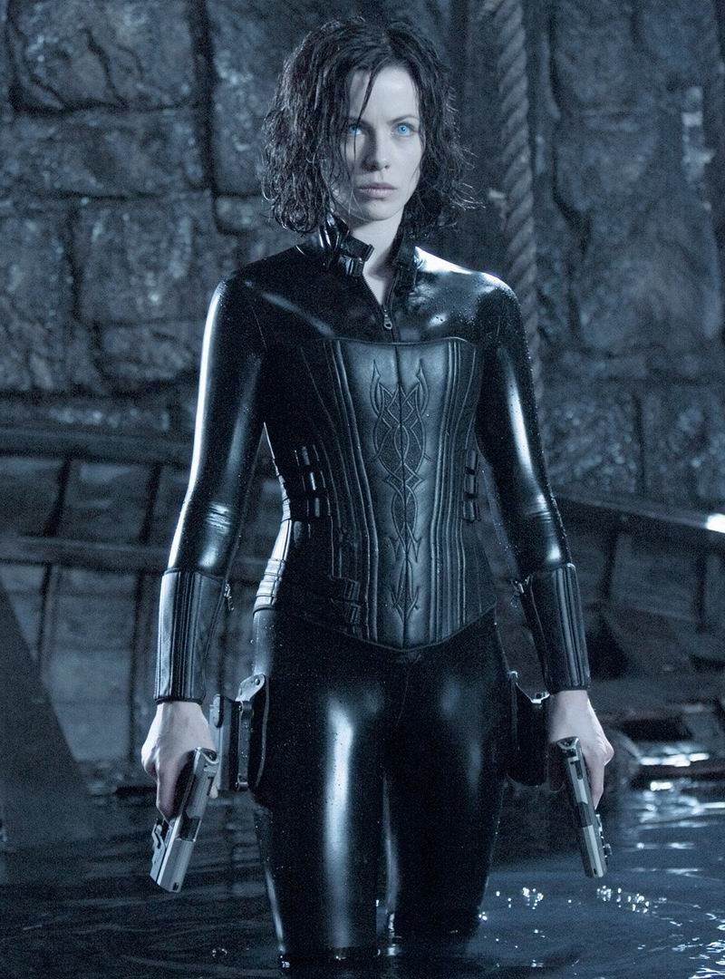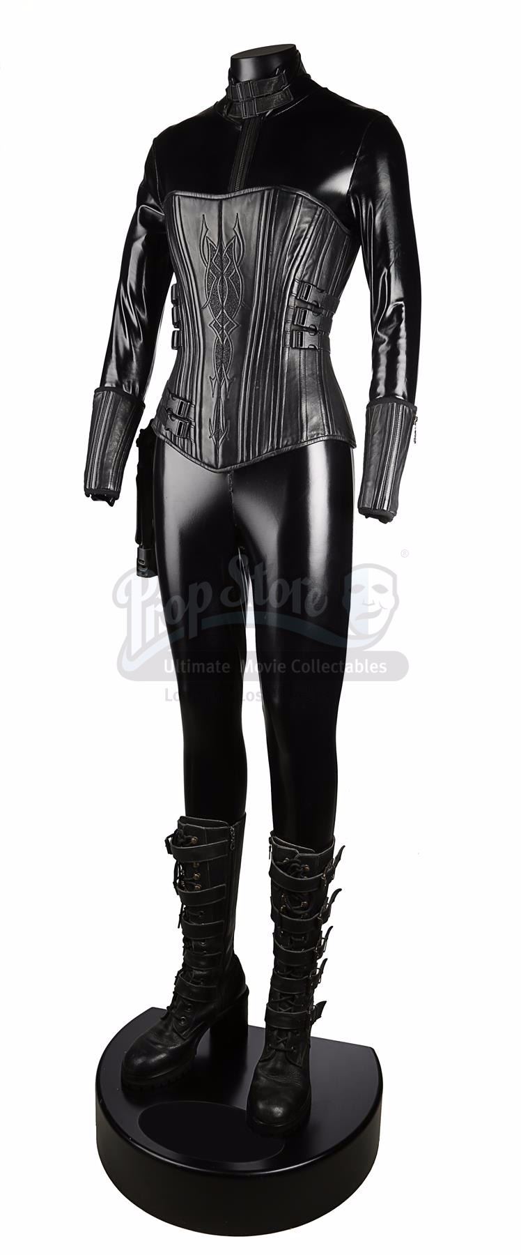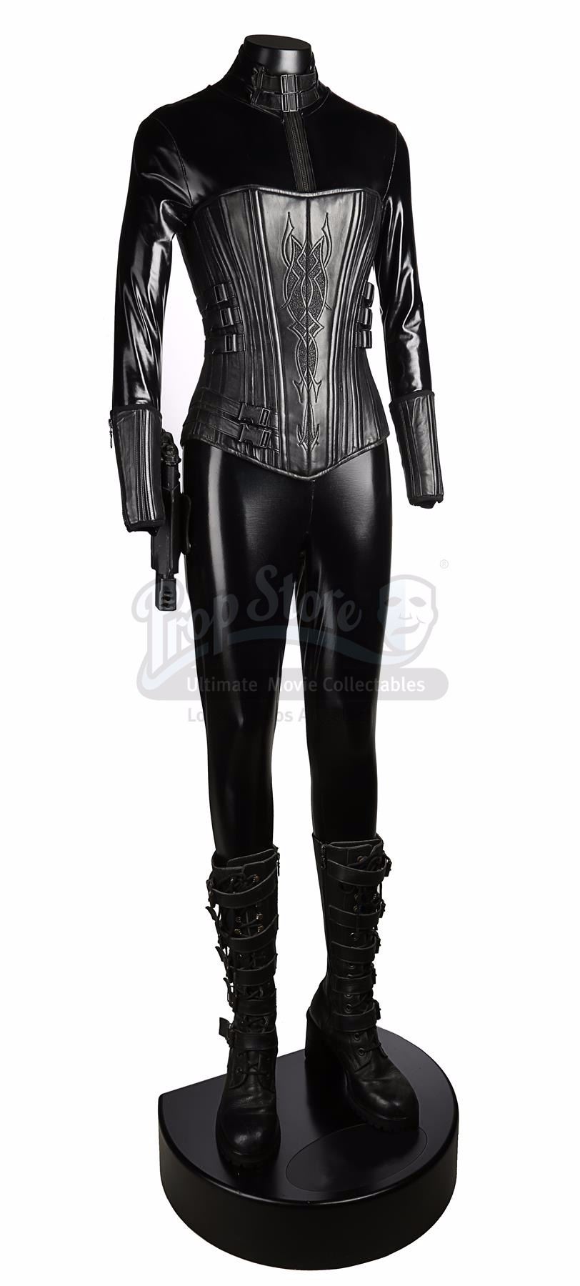 Selene's (Kate Beckinsale) Death Dealer costume from Len Wiseman's gothic horror Underworld: Evolution. Selene wore her signature costume throughout the movie as she fought against the Lycans, the race she believed responsible for killing her family.