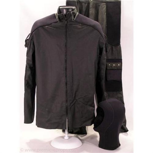 UNDERWORLD EVOLUTION - A must have for fans of the film, this is a Cleaner's Screenworn Hero Assault Costume. The ensemble includes a zip-up black rubber and neoprene jacket accented with mesh gear holders on the shoulders (no size indicated), black rubber and neoprene snap-button cargo Pants (no size indicated), and a black neoprene face mask with openings for the mouth, nose, and eyes. Own the night with this amazing costume from the set of UNDERWORLD EVOLUTION. (UWE1064)