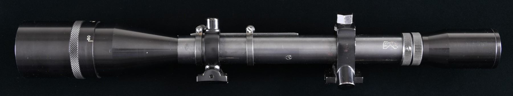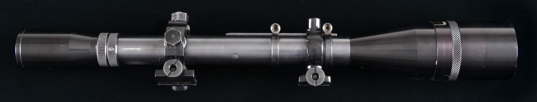 Quality bench rest hunting & target scope. This 10 power Unertl has an adjustable objective. Measures 16" overall w/ a 1" steel tube. The ocular & objective bells are alloy. Tube is marked on left side w/ Unertl logo. External alloy mounts. Rear mount has hexagon locking caps. Recoil spring is not present. Very fine crosshair reticle. CONDITION: scope has thinning & light wear w/ scattered small handling marks. Screw heads & hex locking caps have notable tool marks. Optics appear clear & serviceable. (02-23953-2/RW). NON-GUN. $400-600.