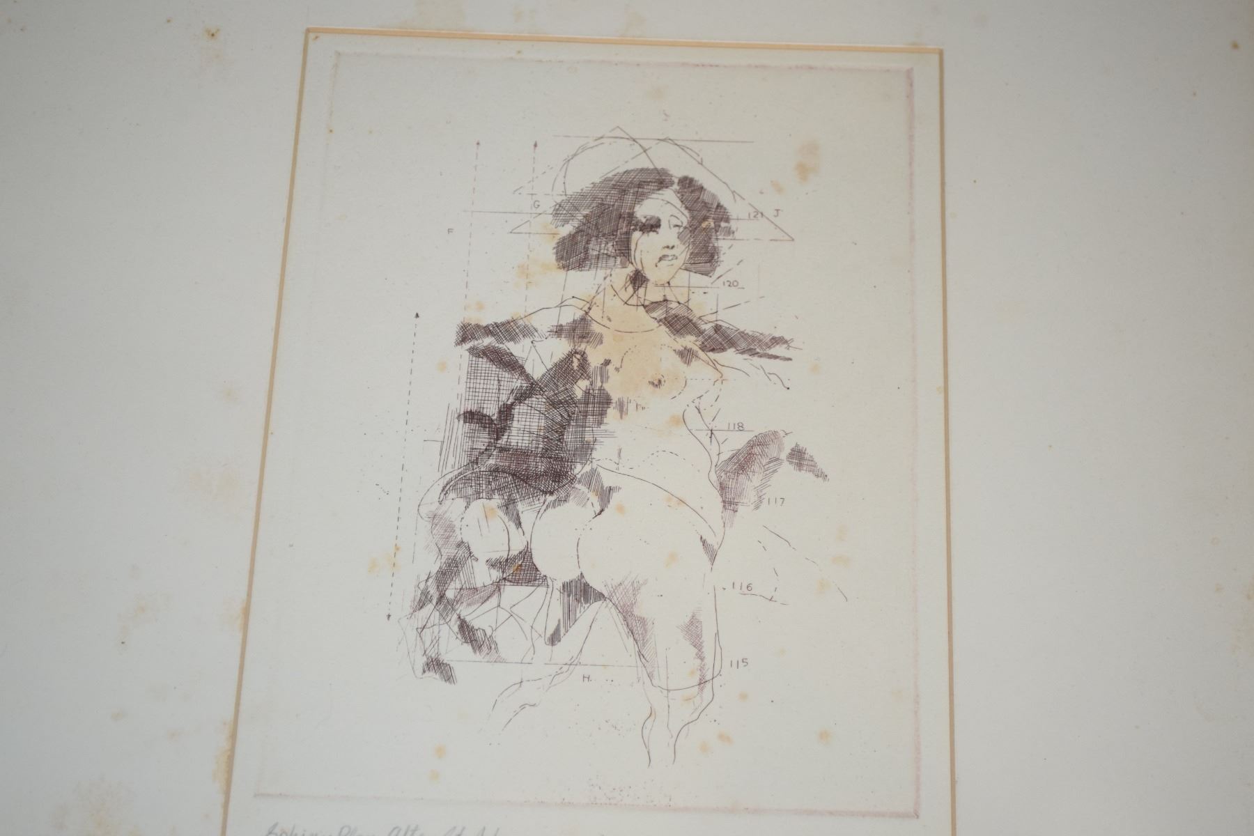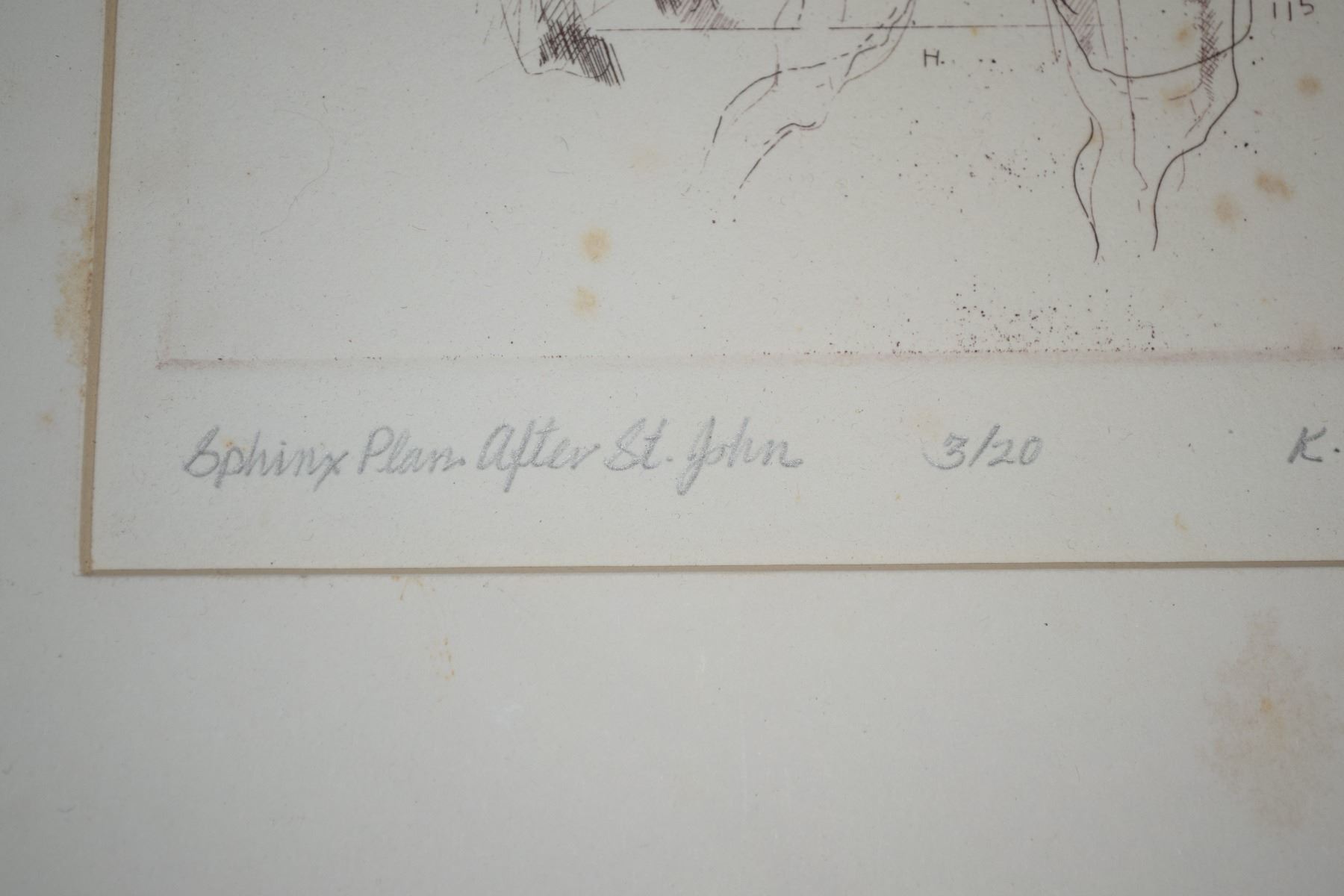 UNFRAMED ETCHING, "SPHINX PLANS"; K. ISHIBASHI (9" X 7") (FOXED)