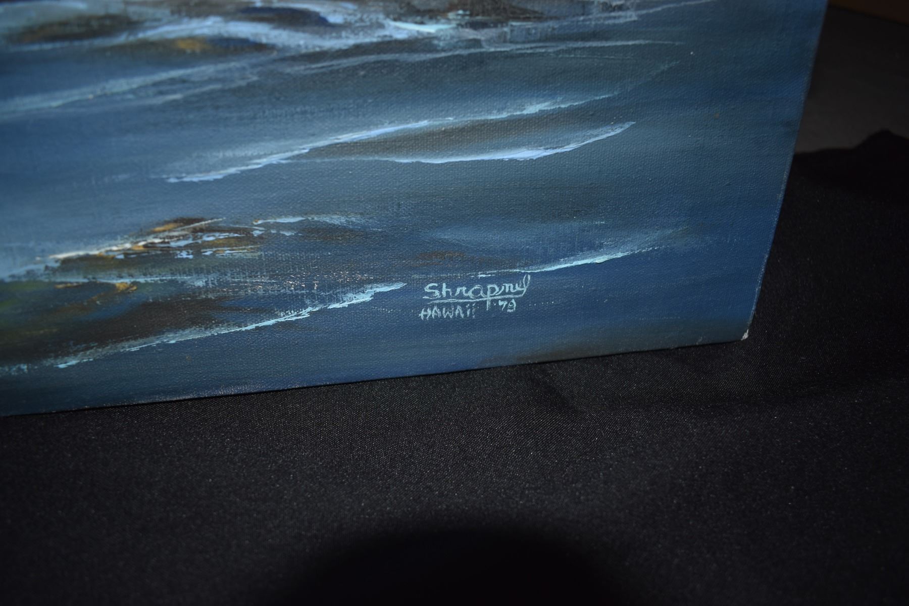 UNFRAMED OIL ON CANVAS, "KAUAI COAST"; SIGNED SHRAFNEL HAWAII '70 (ADELINE SHRAFNEL) (36" X 18")