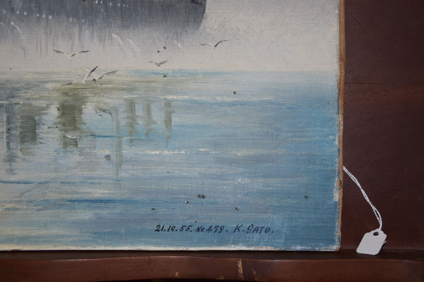 UNFRAMED OIL ON CANVAS, "LIBERTY"; K. SATO, 21.10.55 NO. 479 (18" X 15")