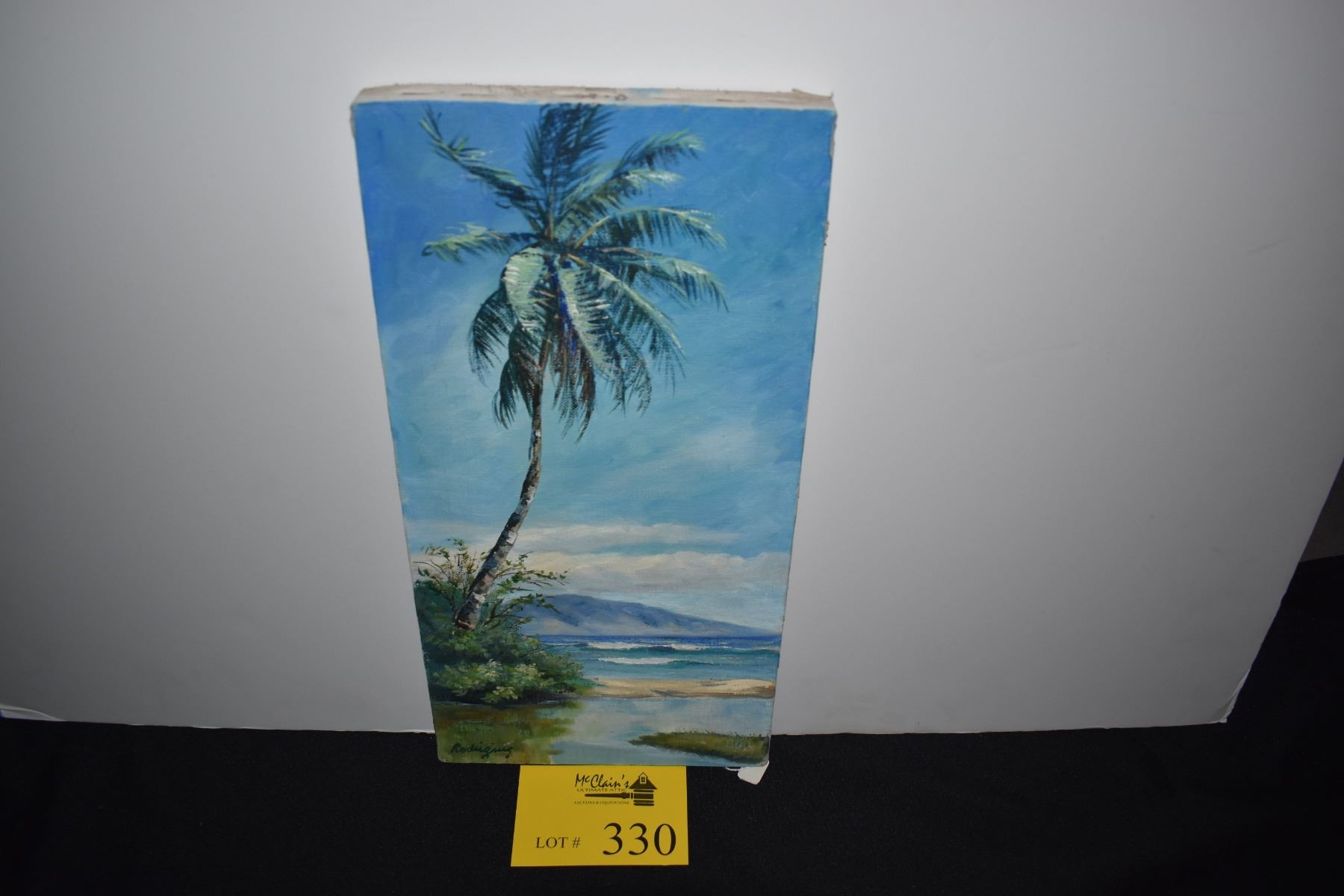 UNFRAMED OIL ON CANVAS, "MAUI FROM MOLOKAI"; SIGNED RODRIGUES (CECILLIA RODRIGUEZ) (8" X 16")