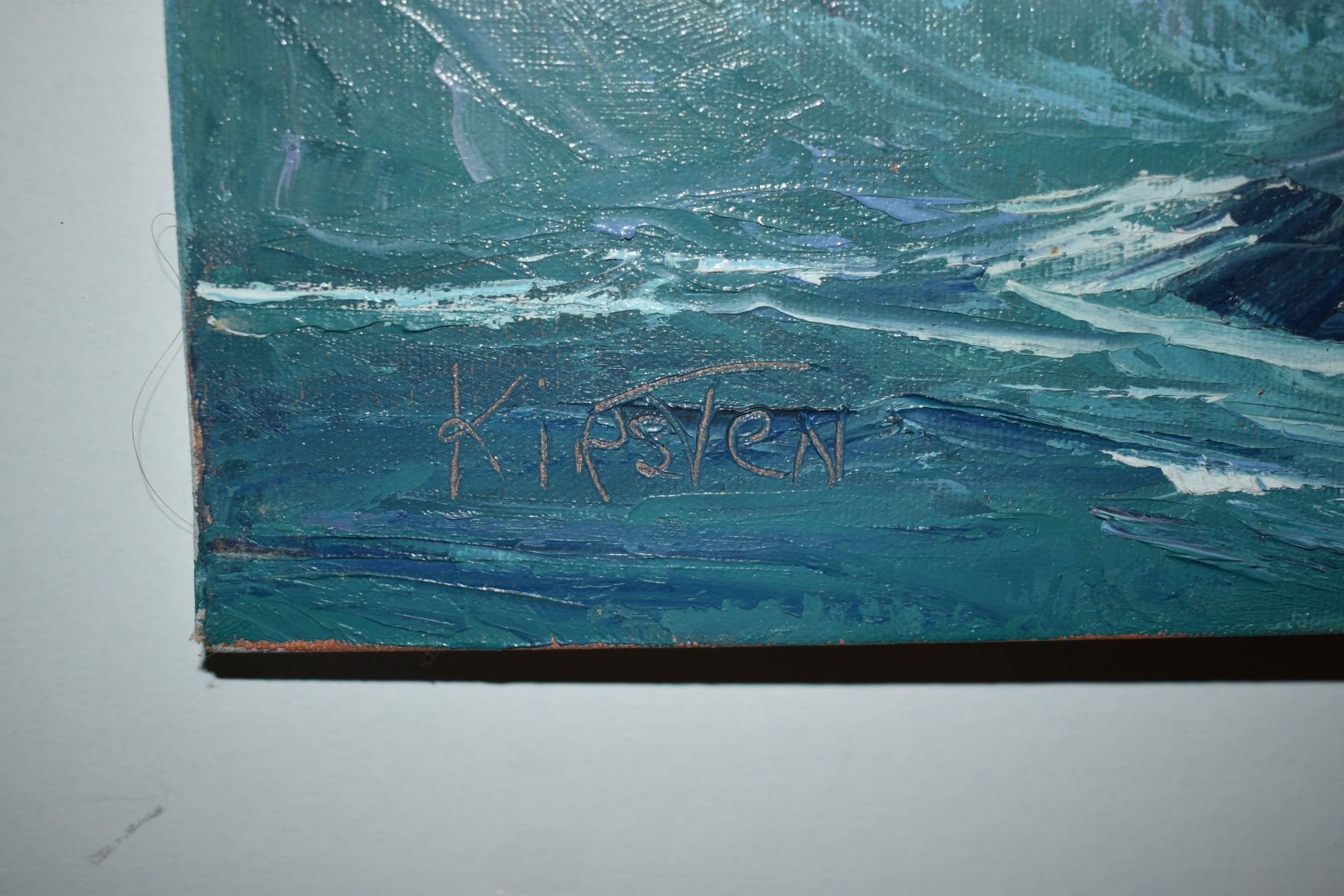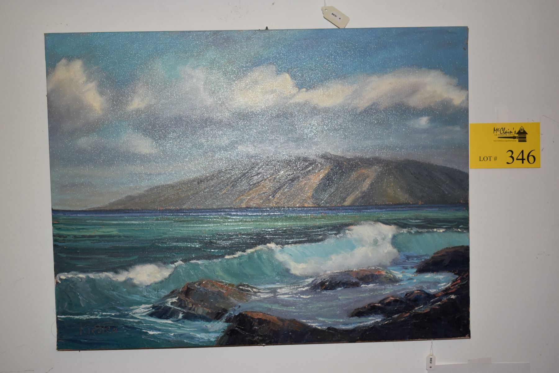 UNFRAMED OIL ON CANVAS, "MOLOKAI FROM MAUI"; SIGNED KIRSTEN (24" X 18")