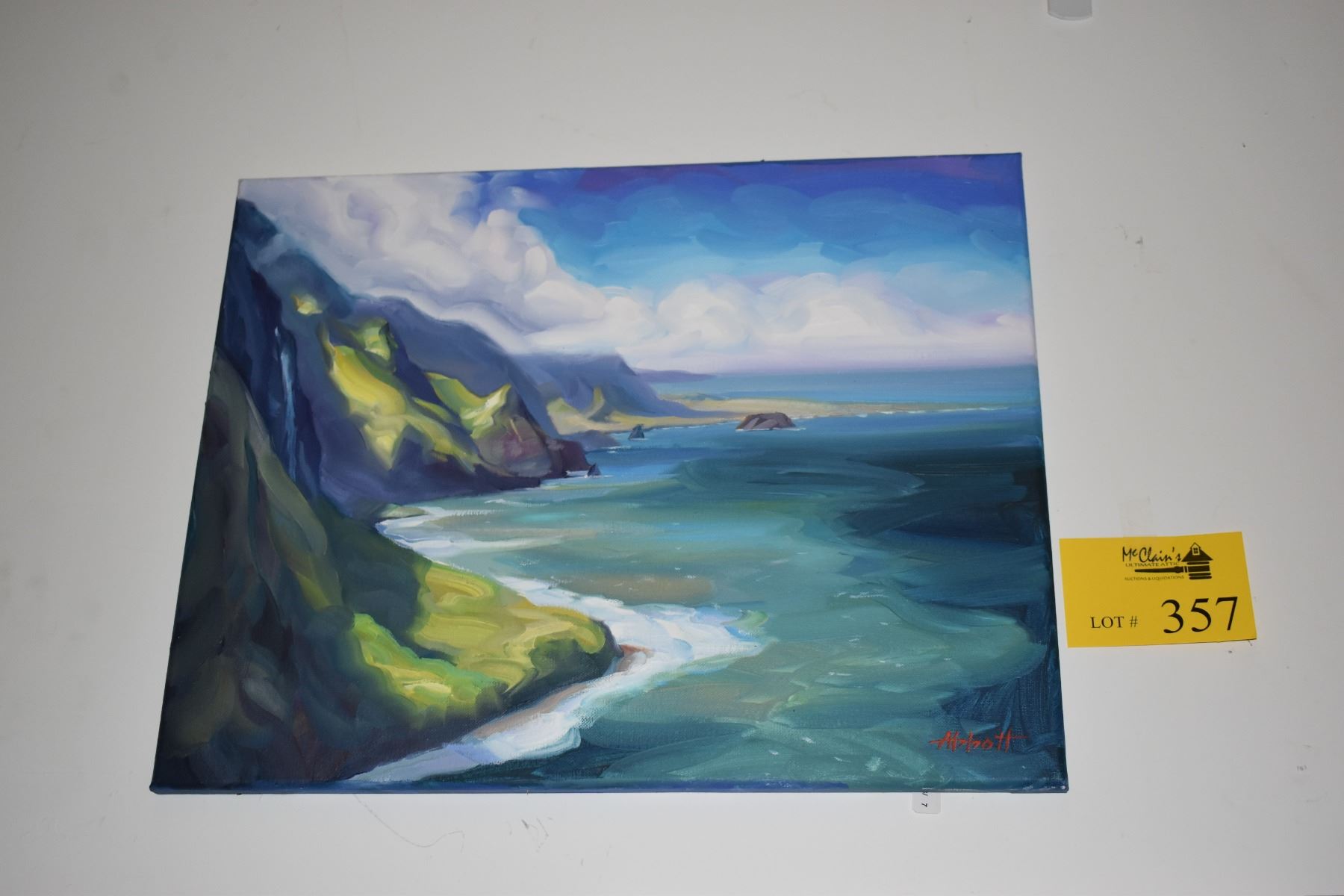UNFRAMED OIL ON CANVAS, "MOLOKAI SEA CLIFFS"; SIGNED ABBOTT (JASON ABBOTT) (20" X 16")