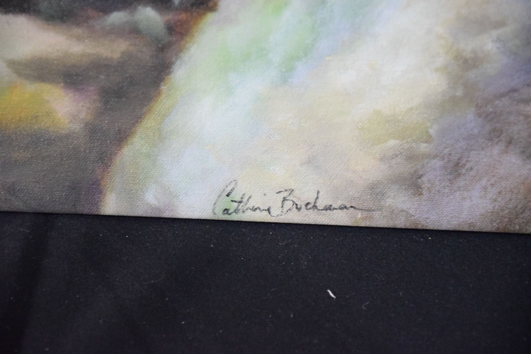 UNFRAMED OIL ON CANVAS, "UNDER THE PRAYER TREE"; SIGNED CATHERINE BUCHANAN, (48" X 59 3/4") (FROM RE