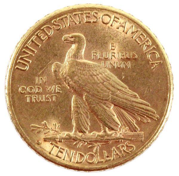 US 1914-D gold $10.00 denomination Indian head coin in VF condition.