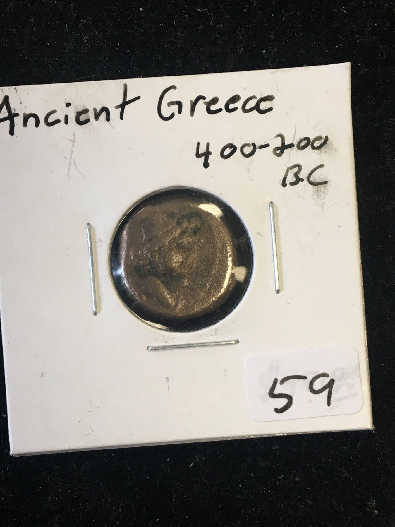 NICE ANCIENT GREEK BRONZE COIN.SHOWING A RIGHT FACING BUST AND FIRE ALTER REVERSE?!4th-3rd CENTURY B.C