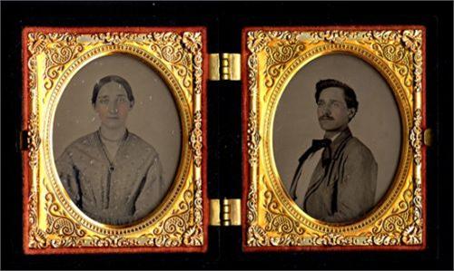 Another fine 1/9 plate case, with a pair of ambrotypes, husband and wife. [4]
