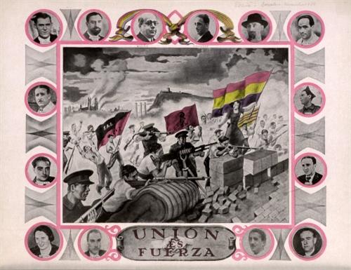 RUIZ, M. UNION ES FUERZA. 1936. 48x37cm. (19x14,5in.). Litografía. A-.